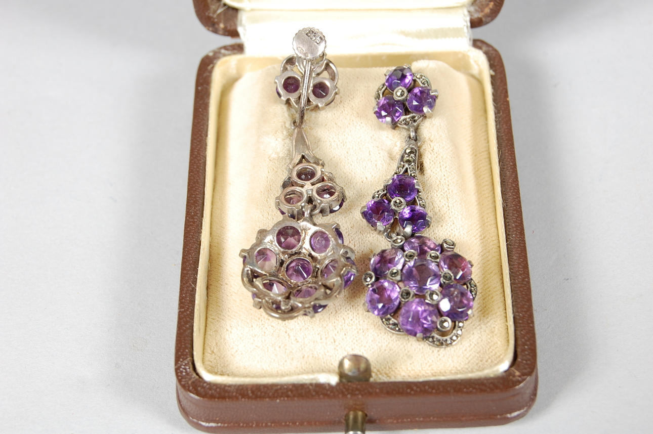 23317. ÖRHÄNGE, silver, ametister, 1920-tal.