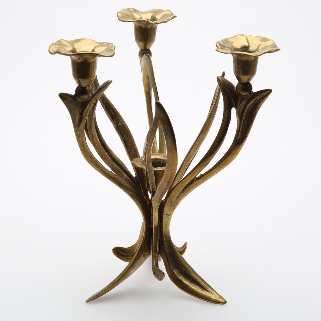 2331940. FAT samt LJUSSTAKE , jugendstil. Mässing.