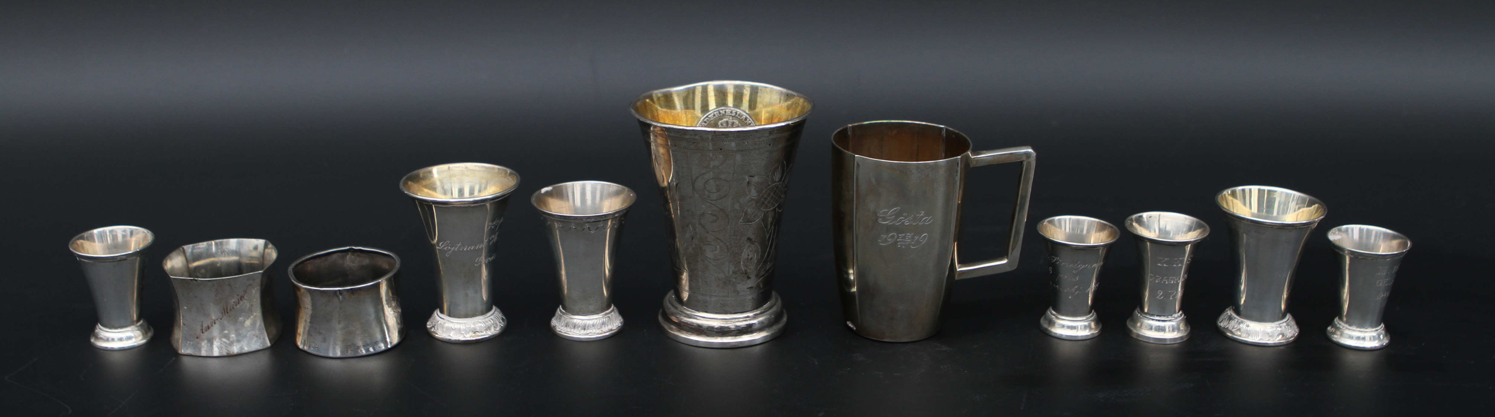 23340. MINDRE POKALER MM, silver, 11 delar.