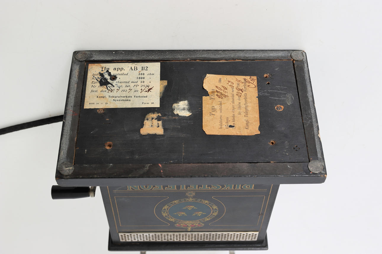 Tfn app. AB 112 tidigt 1900-tal, märkt Rikstelefon, K. Telegrafverkets Verkstad, Stockholm 24/2 1908, typ Tbm.