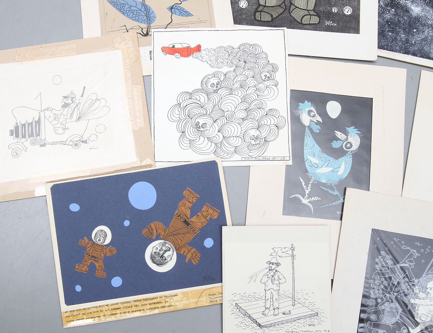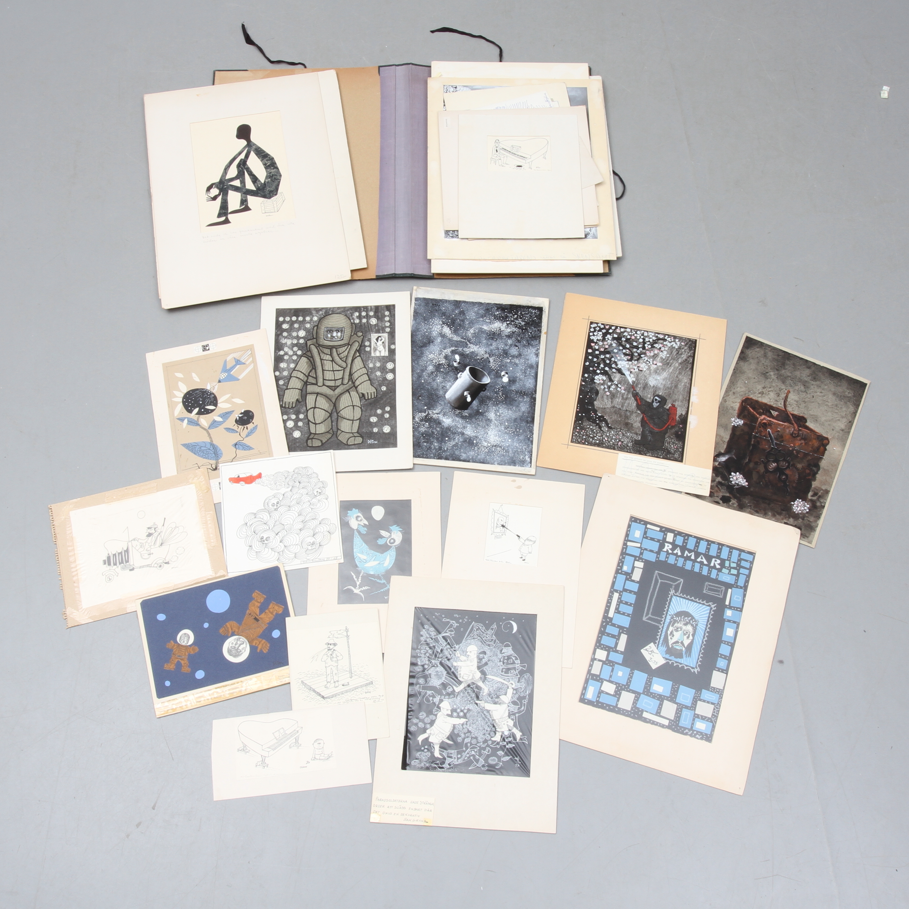 233643. BJÖRN HINDERS. MAPP med målningar och teckningar, ca 44 st.