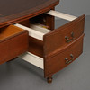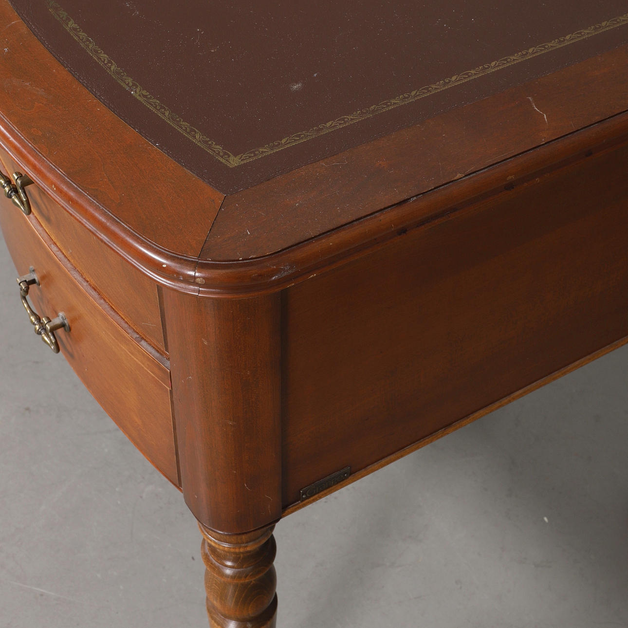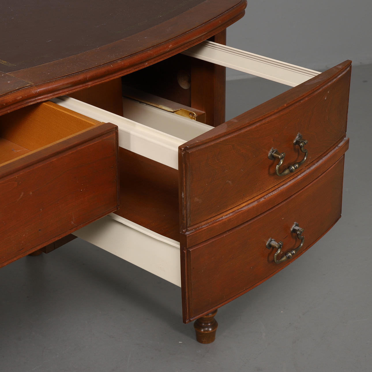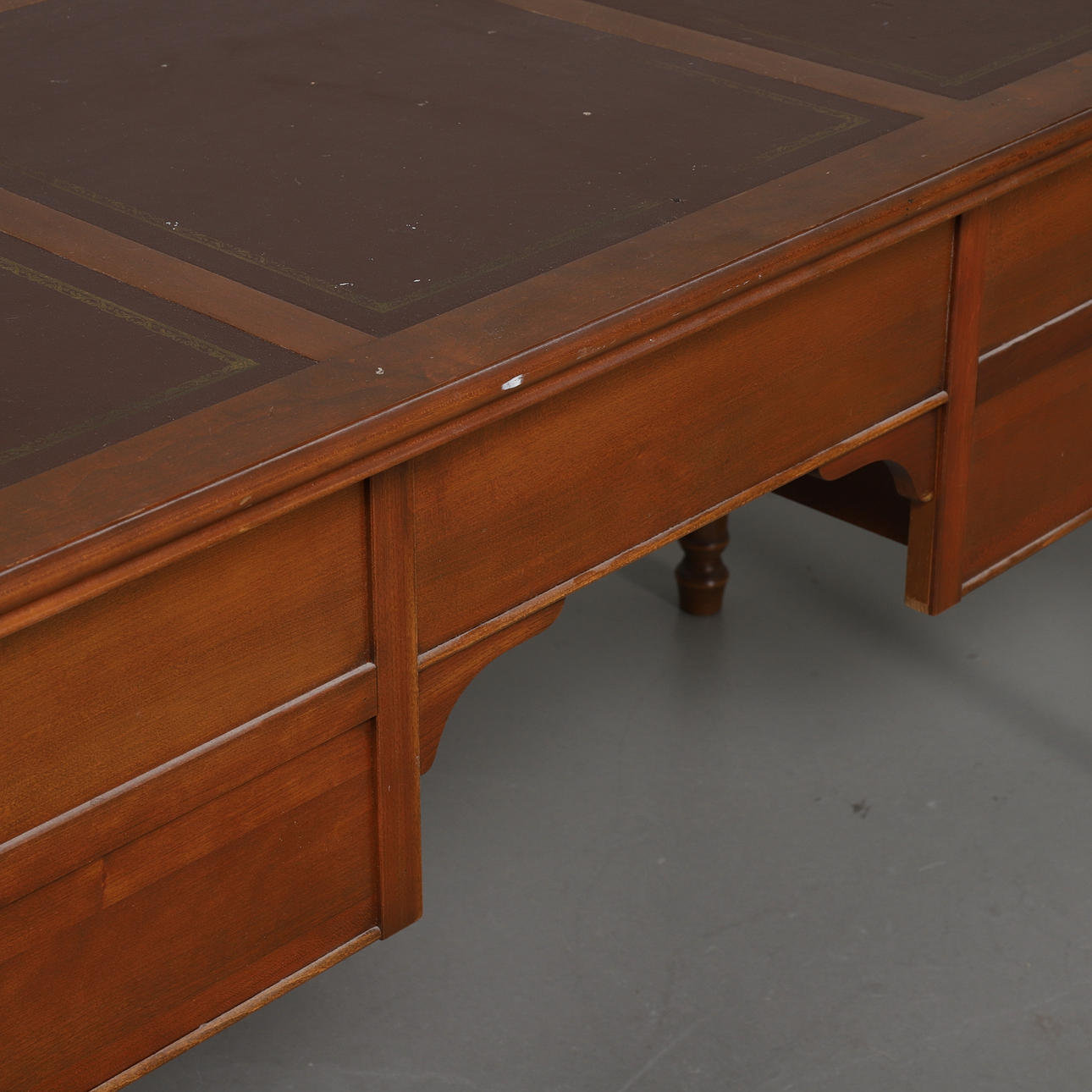 Skrivbord i trä, metall och syntetiskt läder Höjd 77 cm Djup 75 cm Bredd 163 cm.