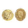 BROSCHER, två stycken, förgyllda klassiska. 800 silver.