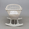 Korg i flätad rotting. Benställning i målat trä. Längd ca 90, höjd 75 cm.