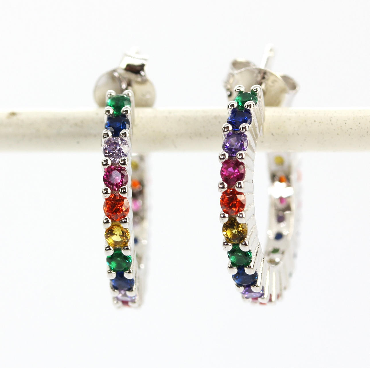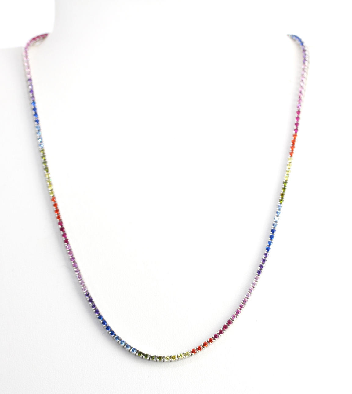 Halsband i 925 silver regnbåge med ett matchande par örhängen, halsband L.46 cm. örhänge Dia. 1,7 cm.
