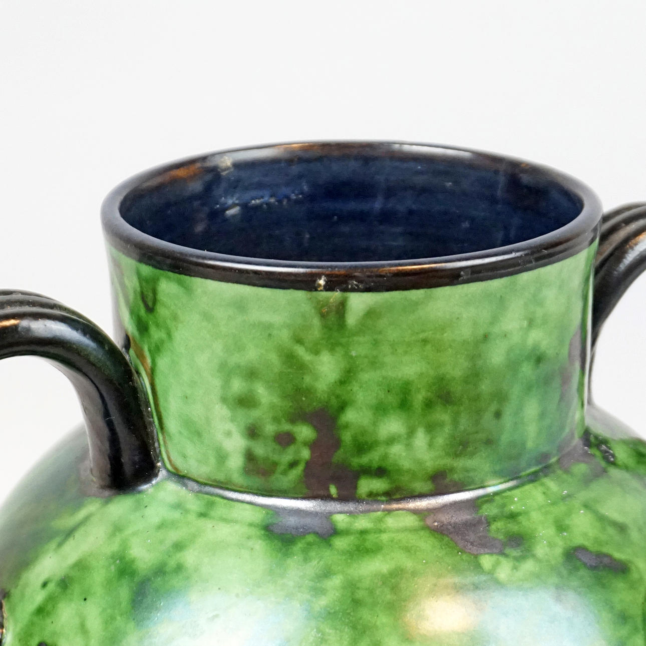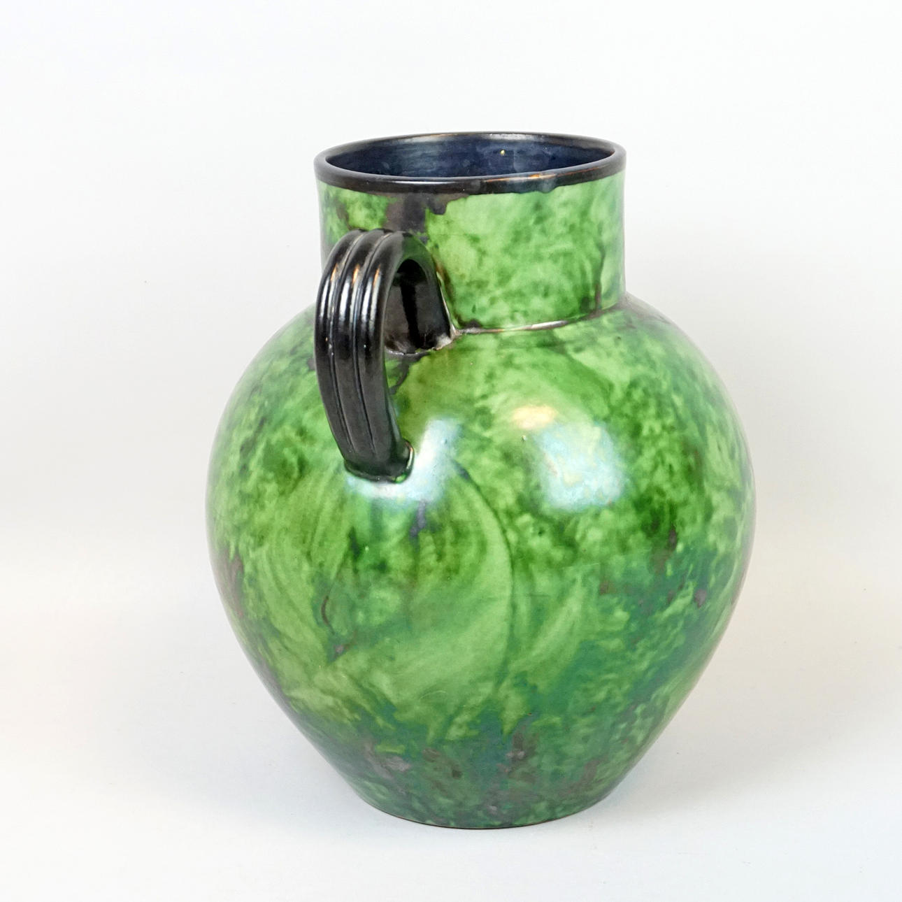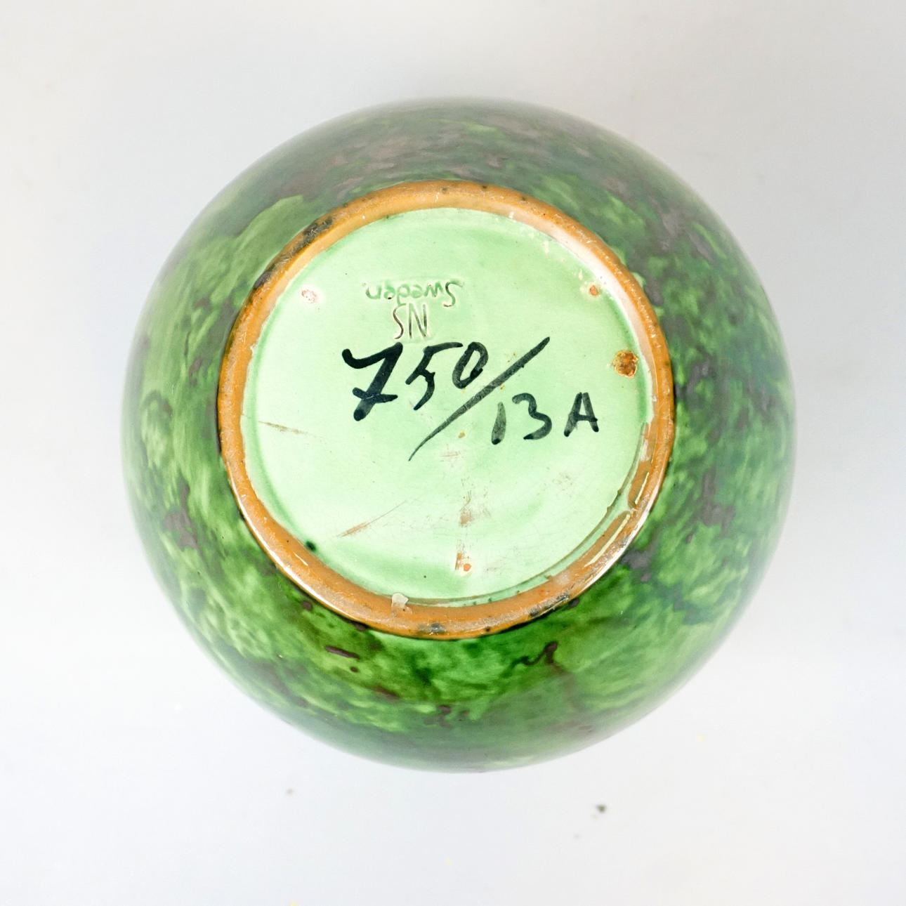 Grön glasyr med svarta hänklar. Märkt nr 750/13A höjd ca 25 cm.