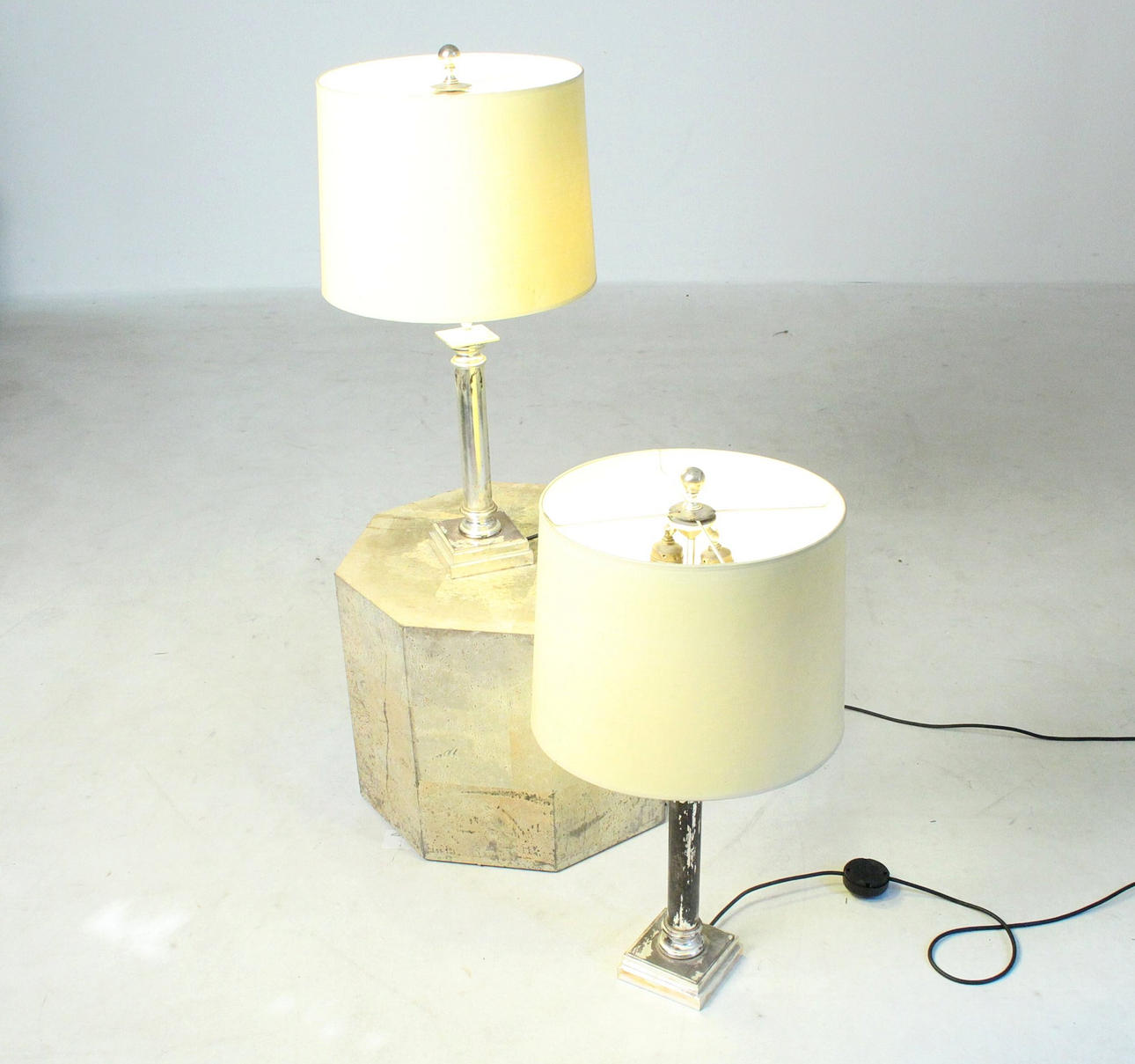 par klassiska bordslampor.