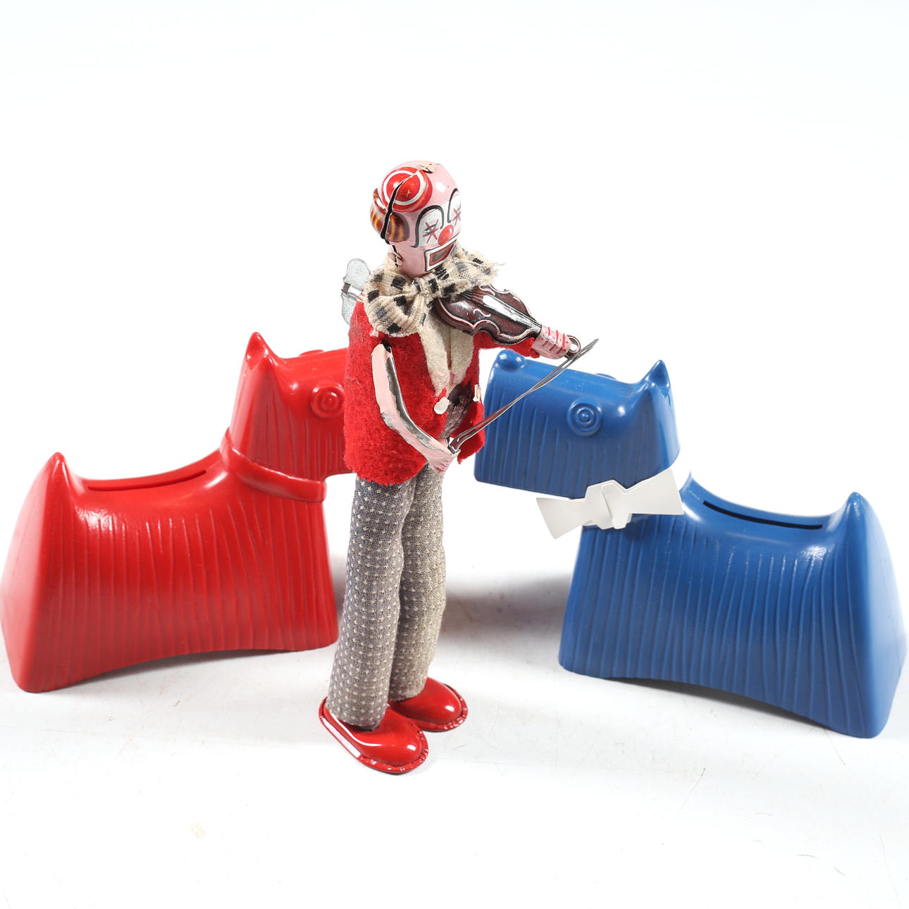 Monami kläder, modellbilar, litograferad clown, godisautomat, leksakstelefon, trafiksignaler i plast.