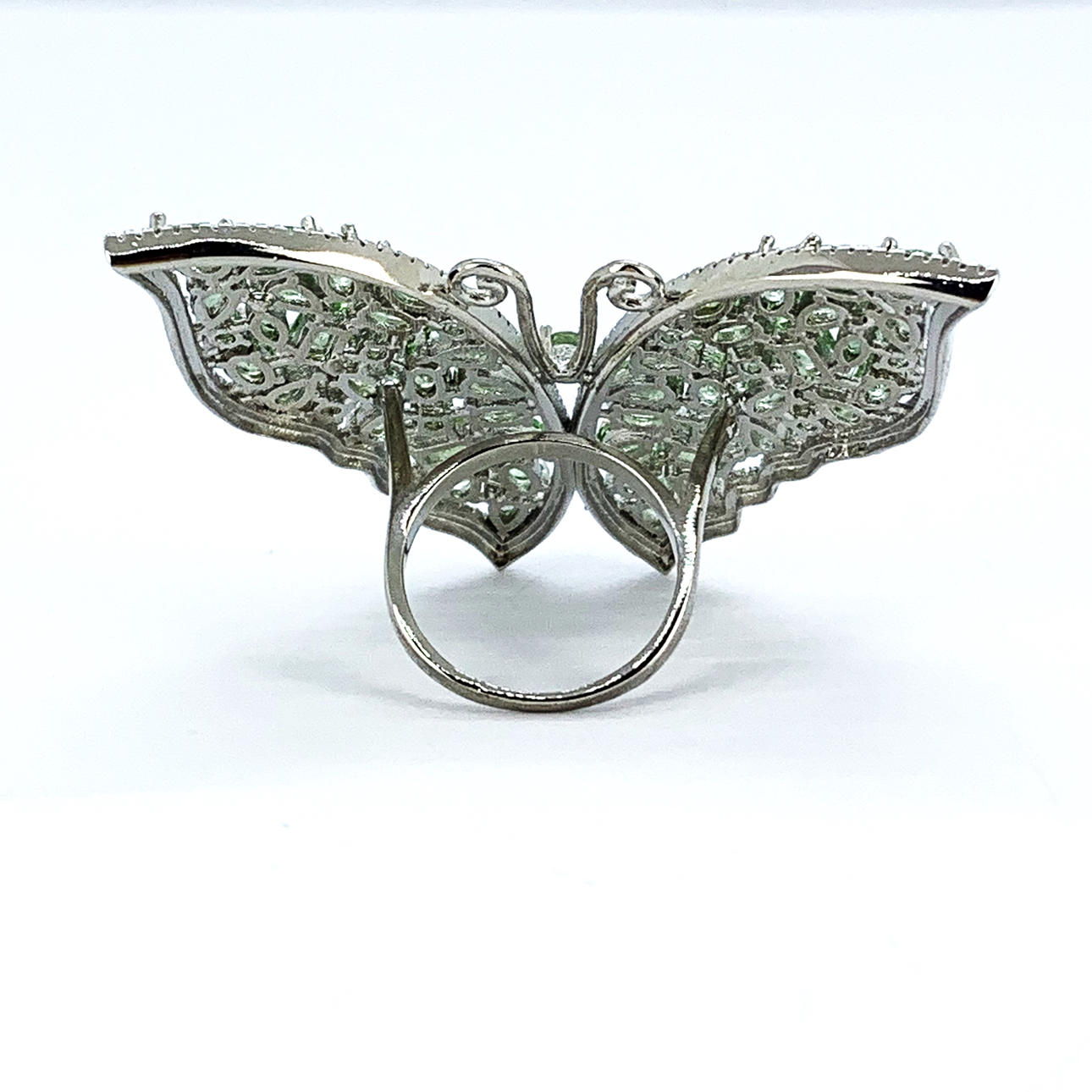En 925 silver och färgad cubic zirconia fjäril ring omgiven av små vita stenar, ringstorlek N. butterfly W. 5cm.