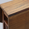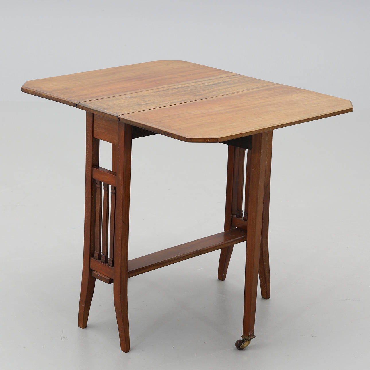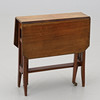 Bredd 60 cm. Längd 17 cm. Höjd 63 cm. Skivan utfälld med snedställda hörn, 75x60 cm.