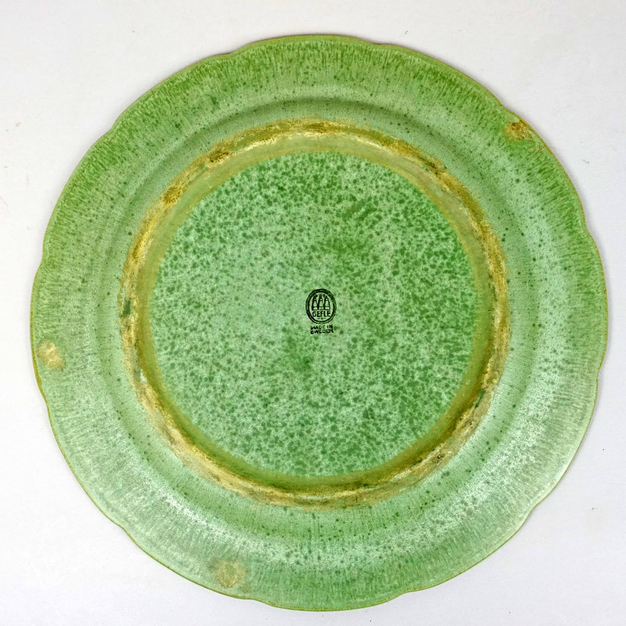 Grönt fat, Gefle, diam ca 30 cm, märkt Gefle made in Sweden