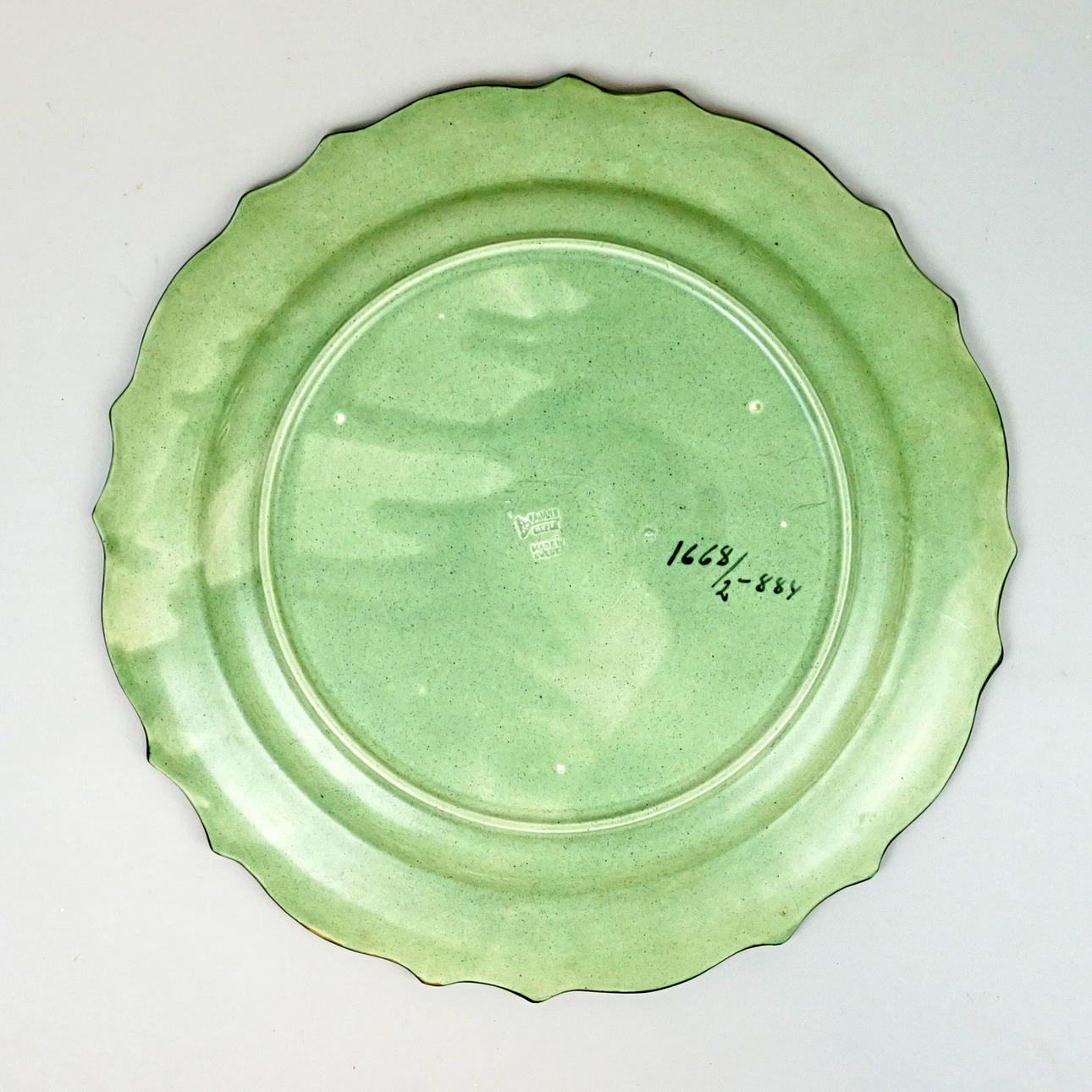Grönt fat, diam ca 37,5 cm, märkt Bo Fajans Gefle, made in Sweden, 1668/2-884