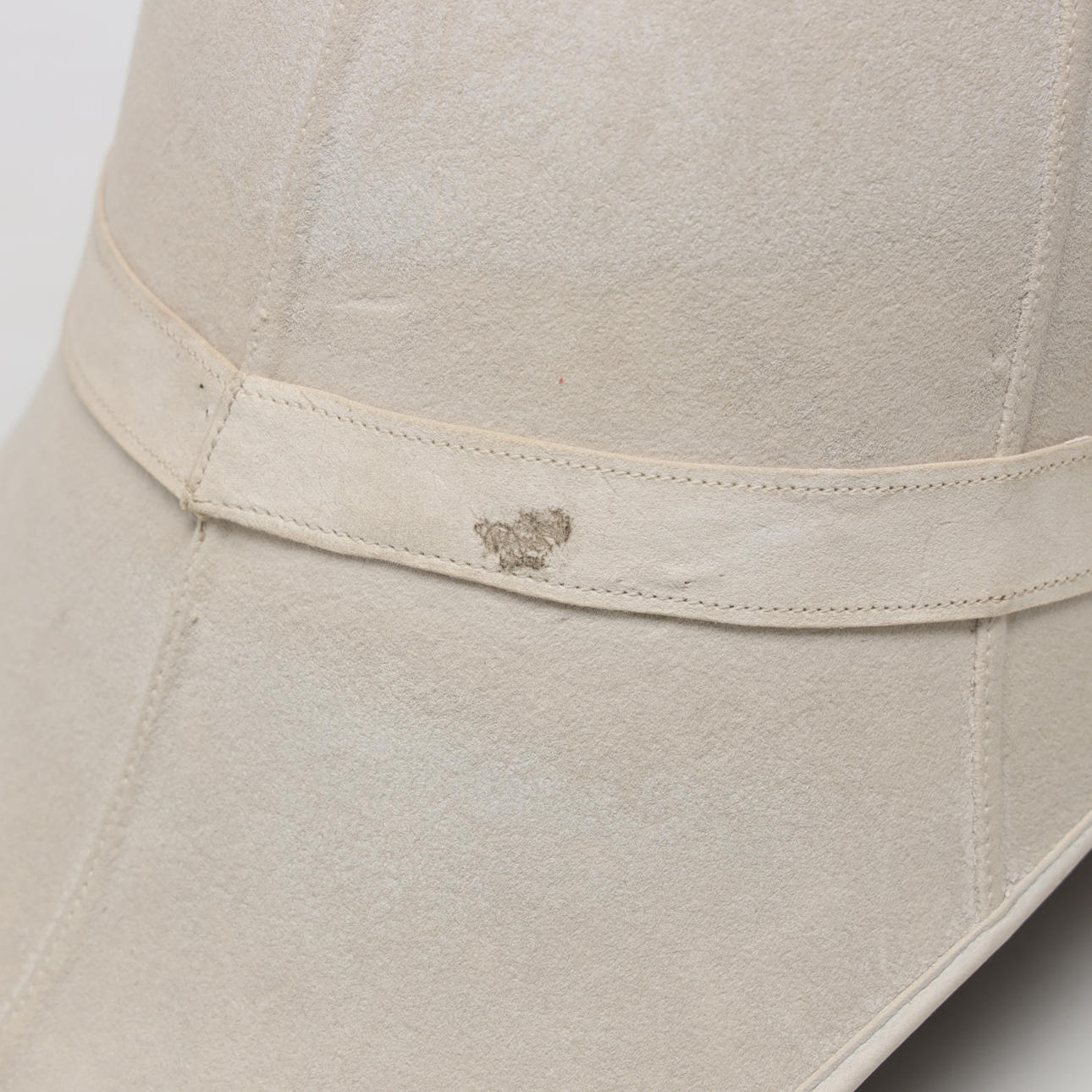 Skev form, Invändigt slitage samt skada på textil. Ojämn färg, fläckar.