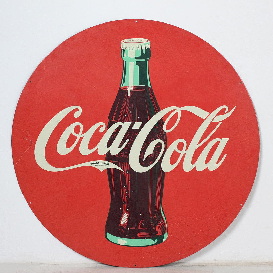 Stor Coca Cola metall reklamskylt. Mått: diameter 116 cm.