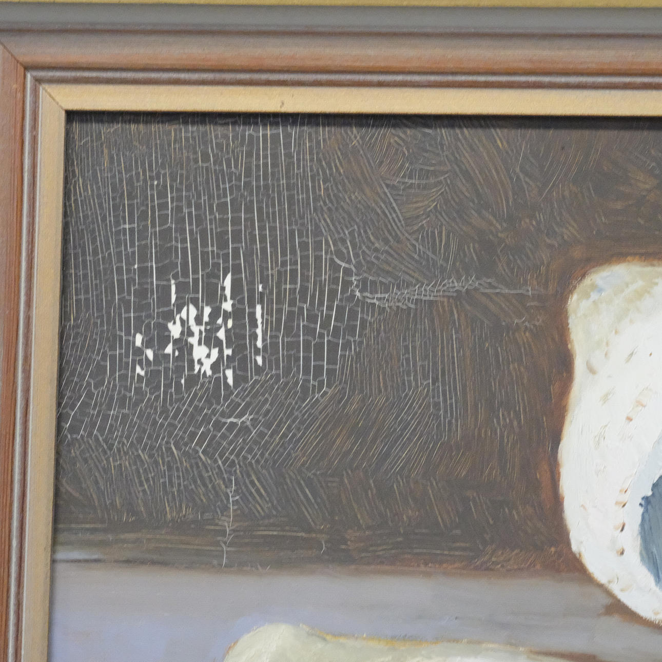 Färgbortfall samt krackelering.