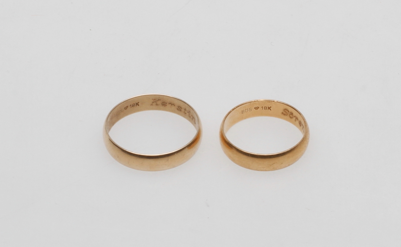 236999. RINGAR, 2 st, 18k guld, vikt ca 8,8 gr.