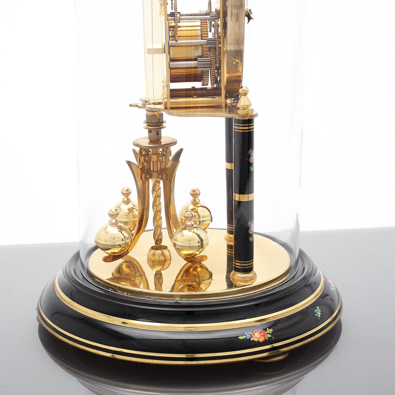Gulmetall. Svart dekor med blomstermotiv. Kupa av glas. Höjd 31 cm.