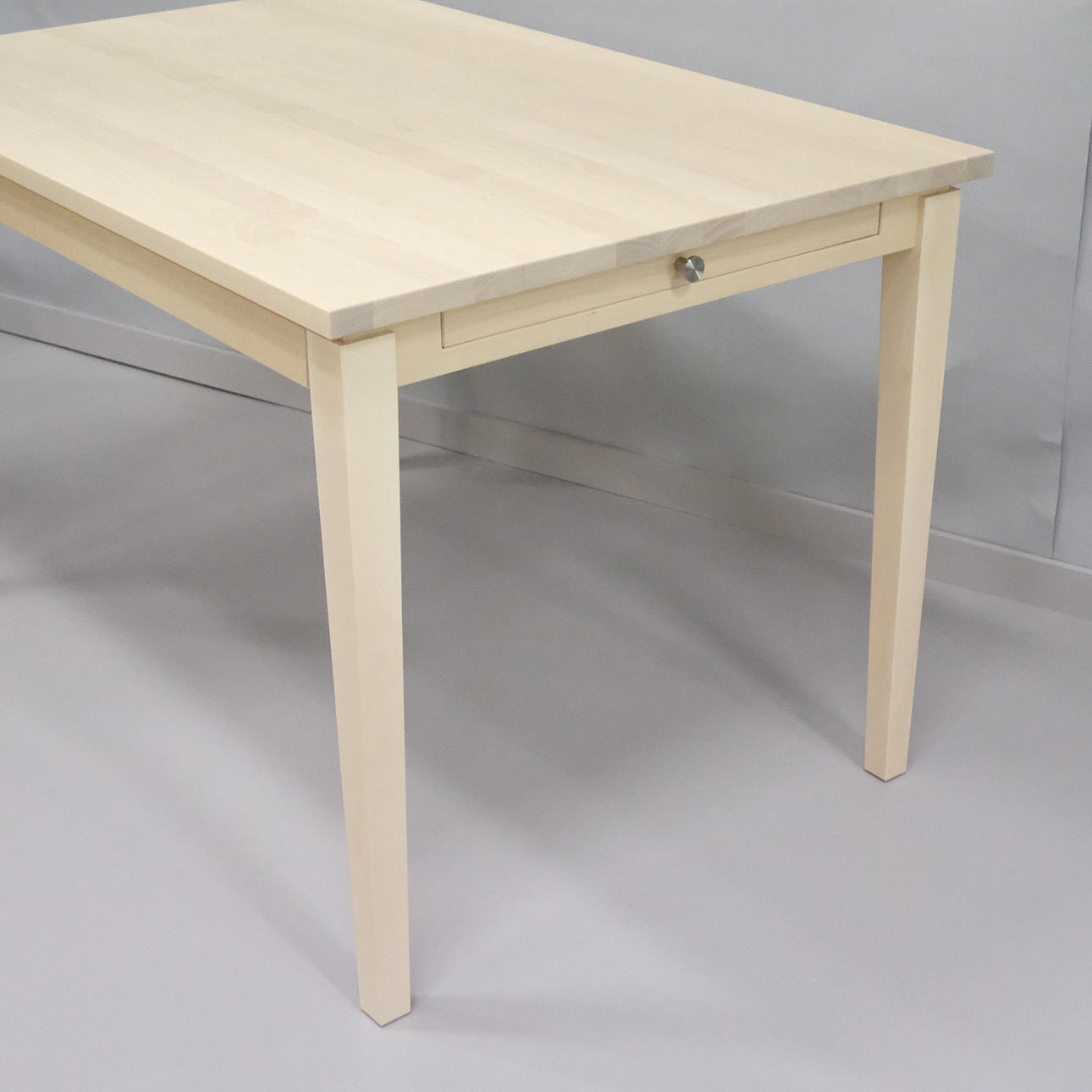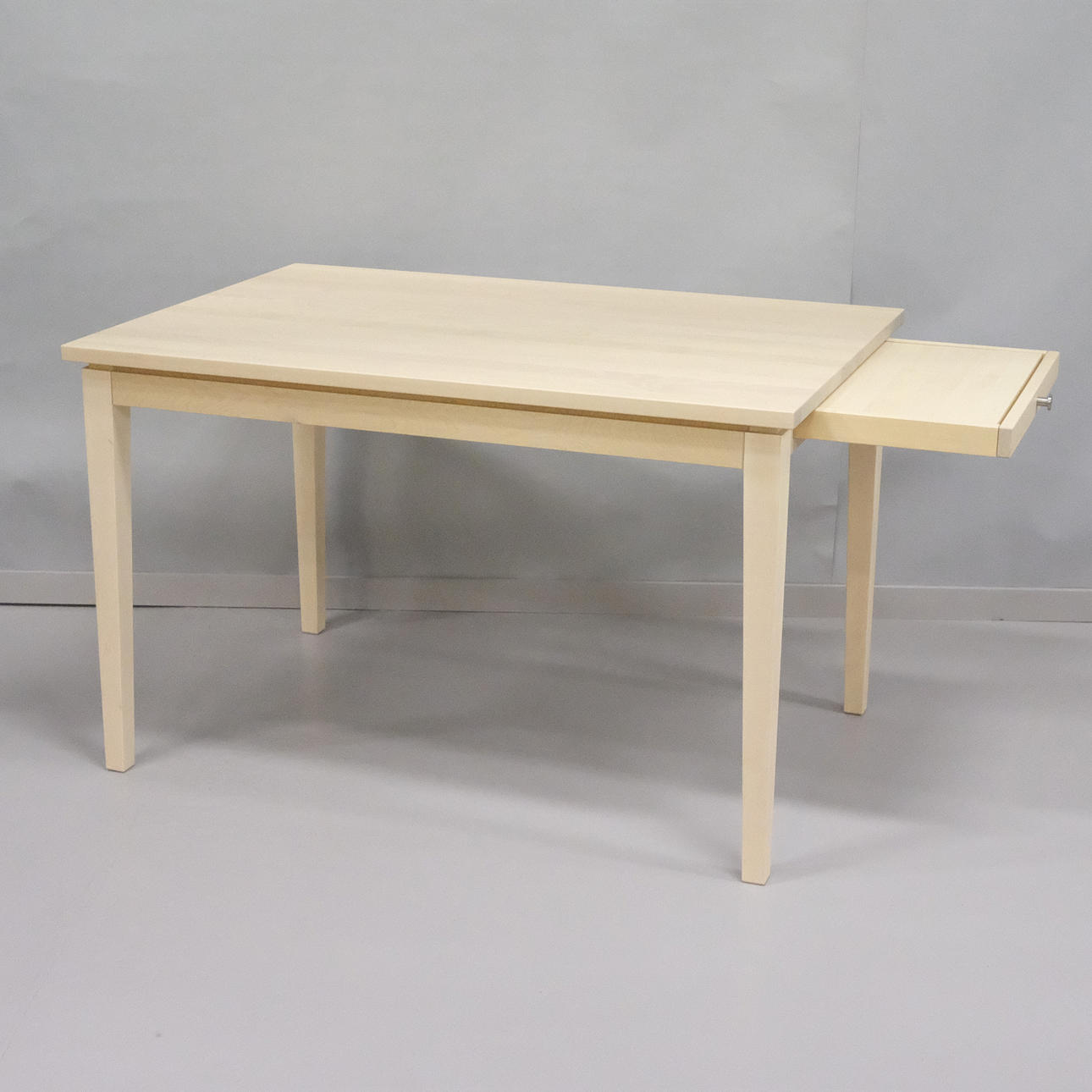 Med inbyggd, utdragbar iläggsskiva. Märkt STOLAB 2019. Bordets höjd:75 cm. Skivans mått: 120 x 80 cm. Nypris ca: 22000kr.