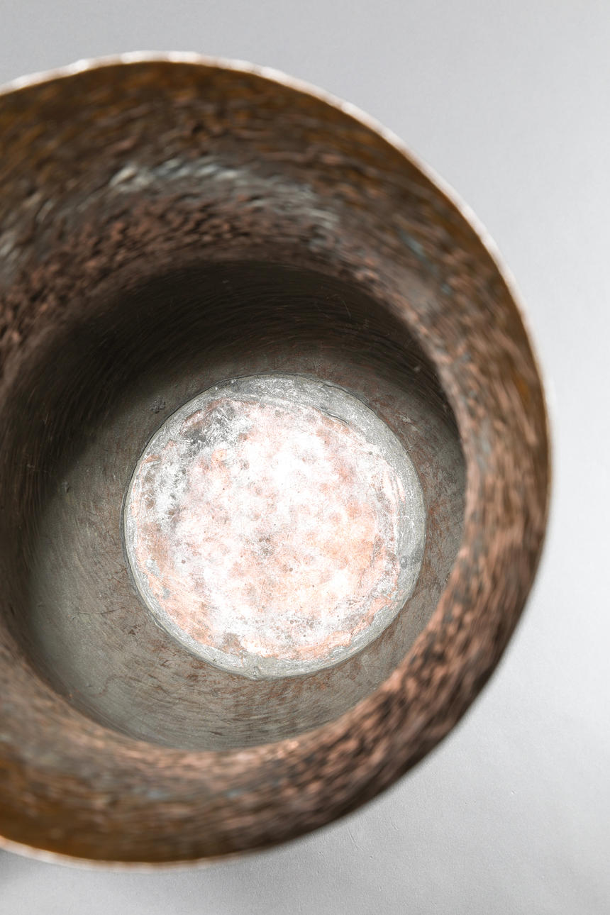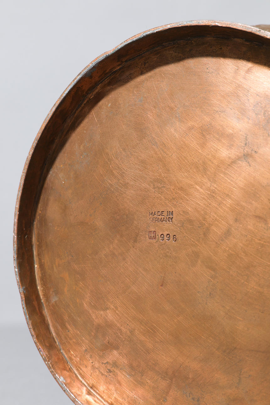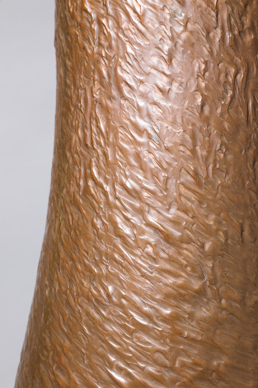 Stor vas. koppar, texturerad vägg, patinerad. H. 55 cm. Inskrivet på botten: verkstadsmärke HF, TILLVERKAD I TYSKLAND, modellnummer 996 (slagstämpel).