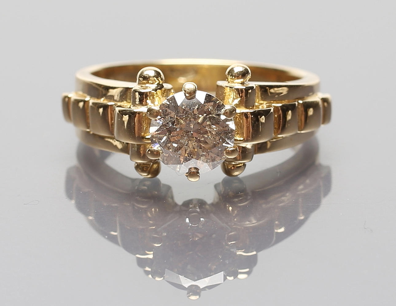 750/000 GG, brutto 7 g. Set med briljant, 1.05 ct., pi. RW 54.