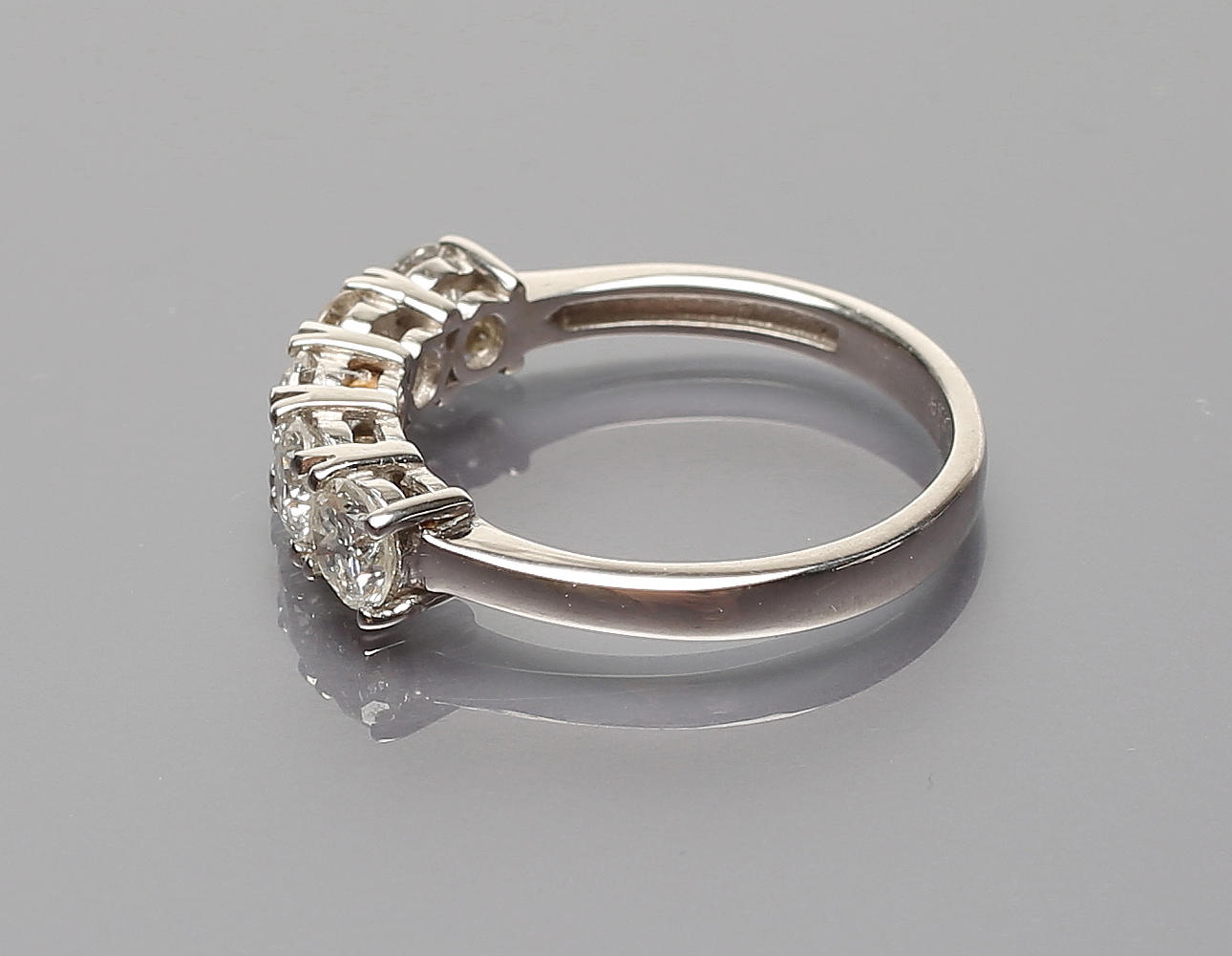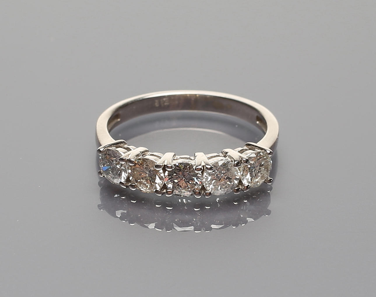585/000 WG, brutto 3,2 g. Med fem briljantslipade diamanter, tillsammans 1.58 ct., cr/pi. RW 58.