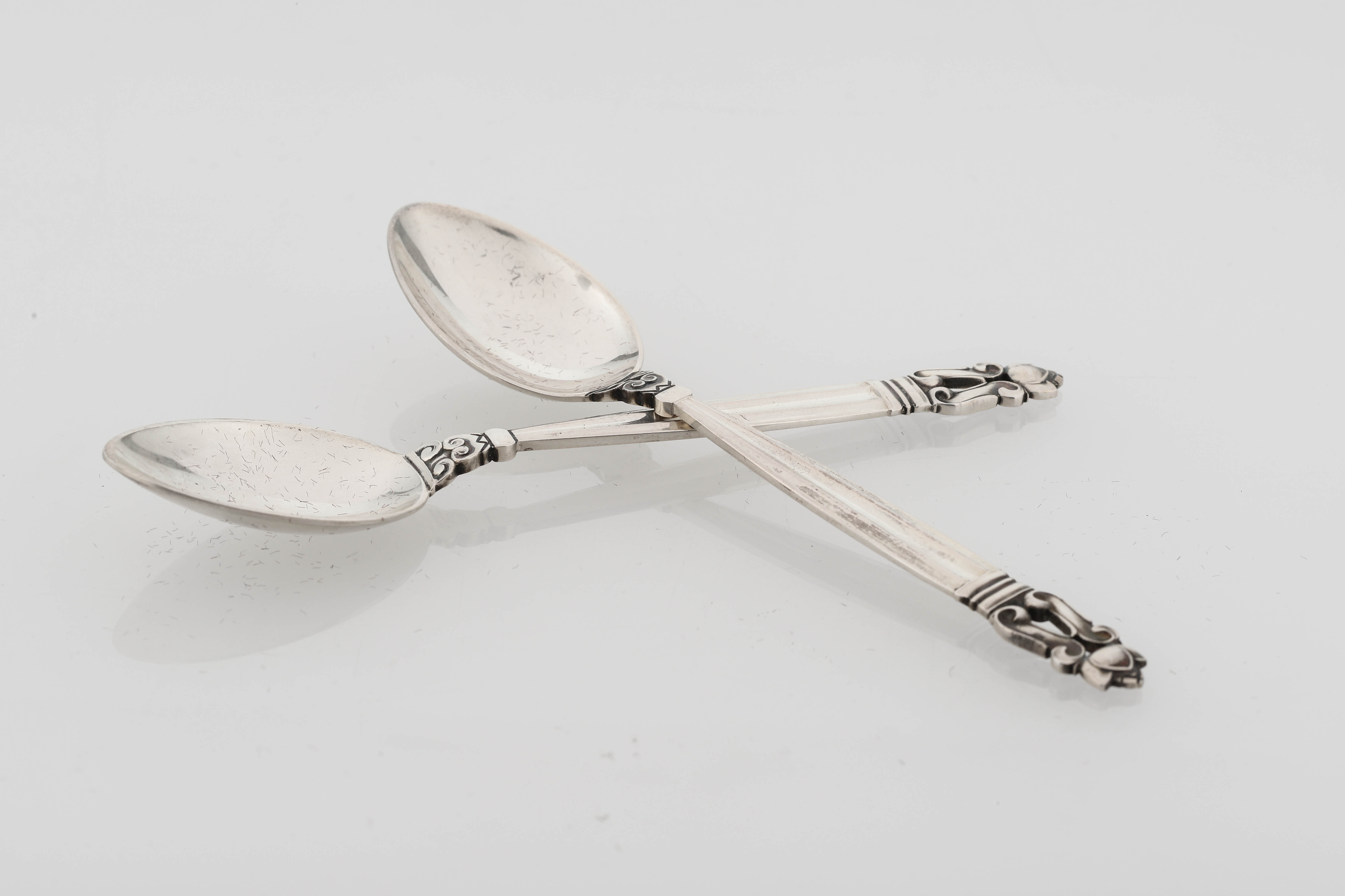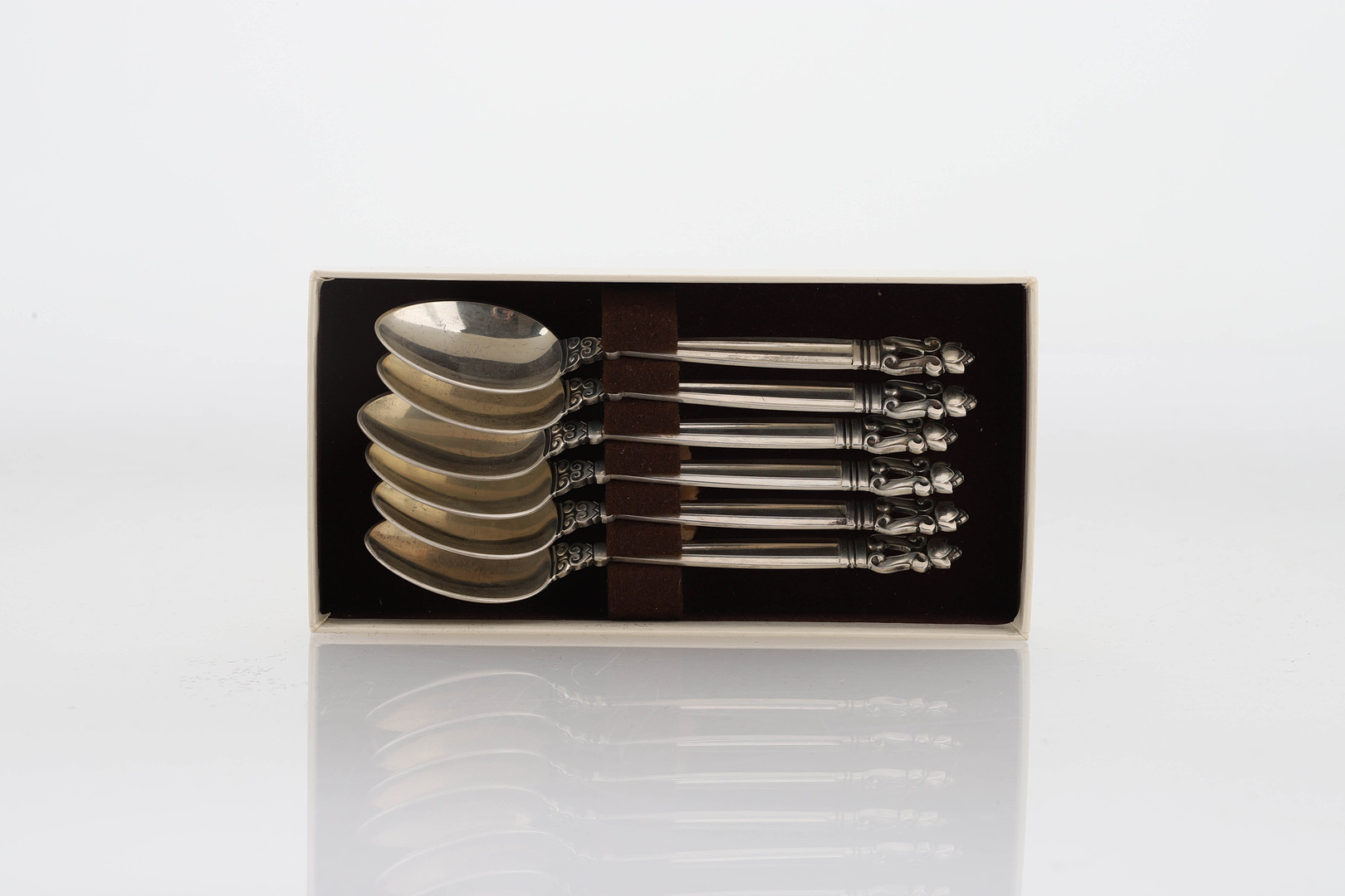 2386297. GEORG JENSEN. Teskedar, 6 st, "Konge", sterlingsilver, Danmark.