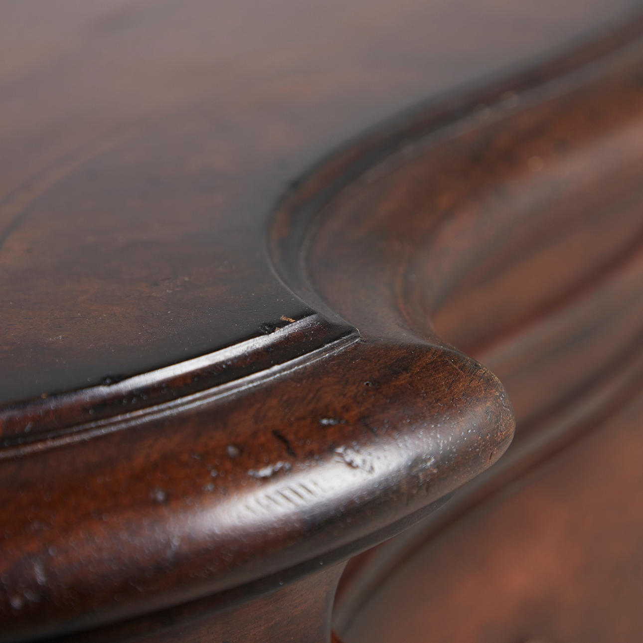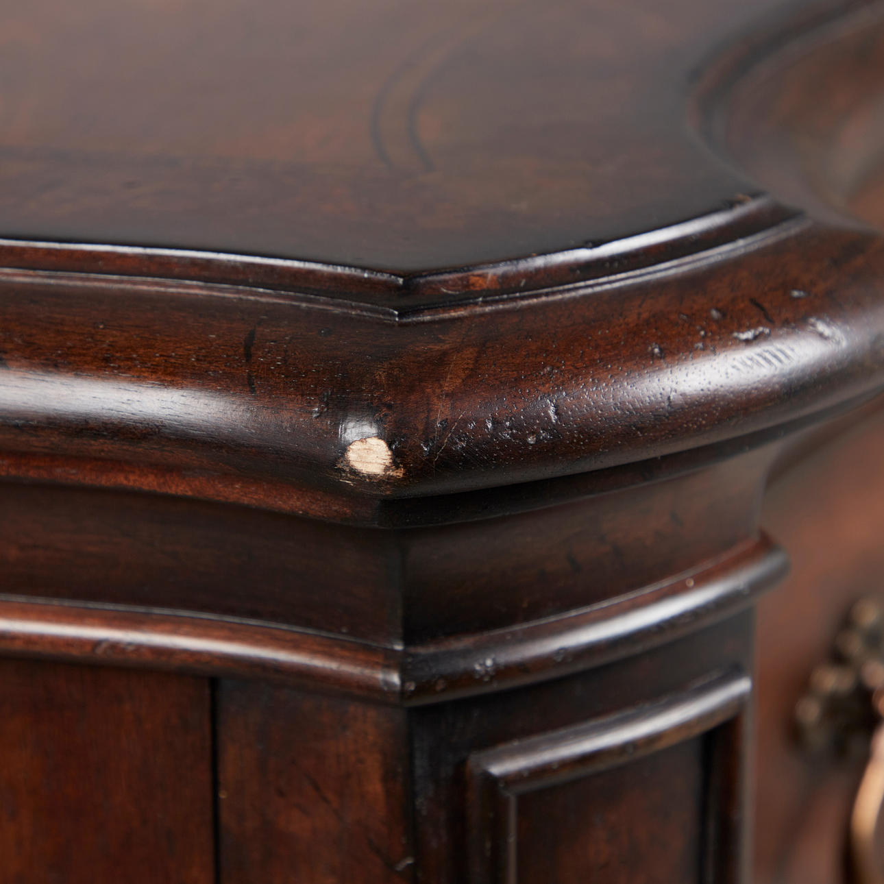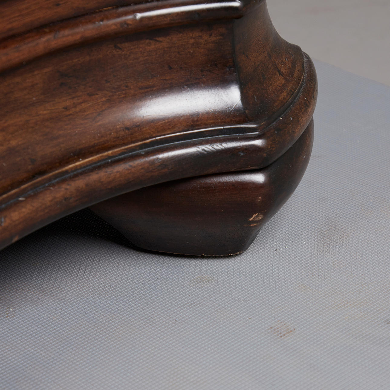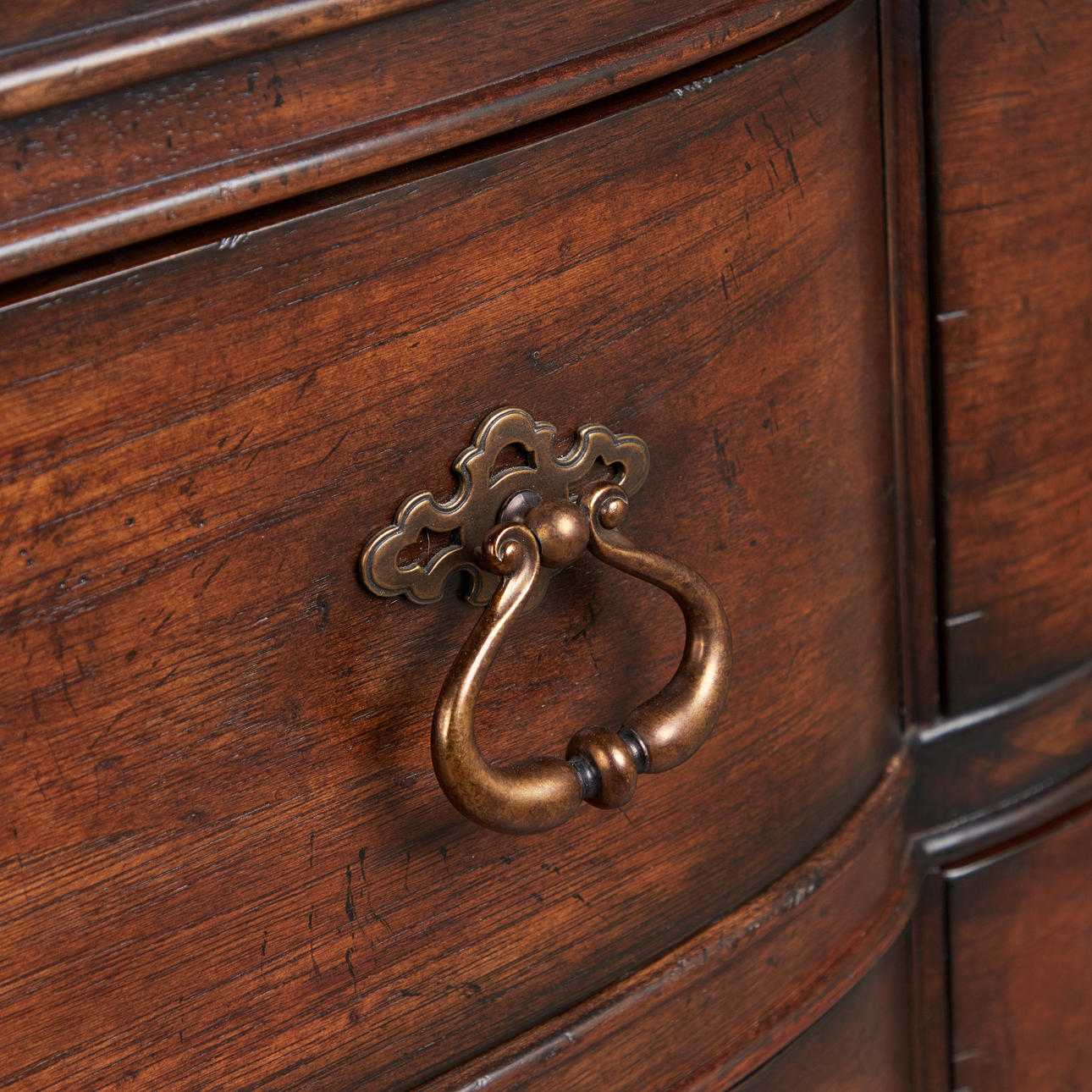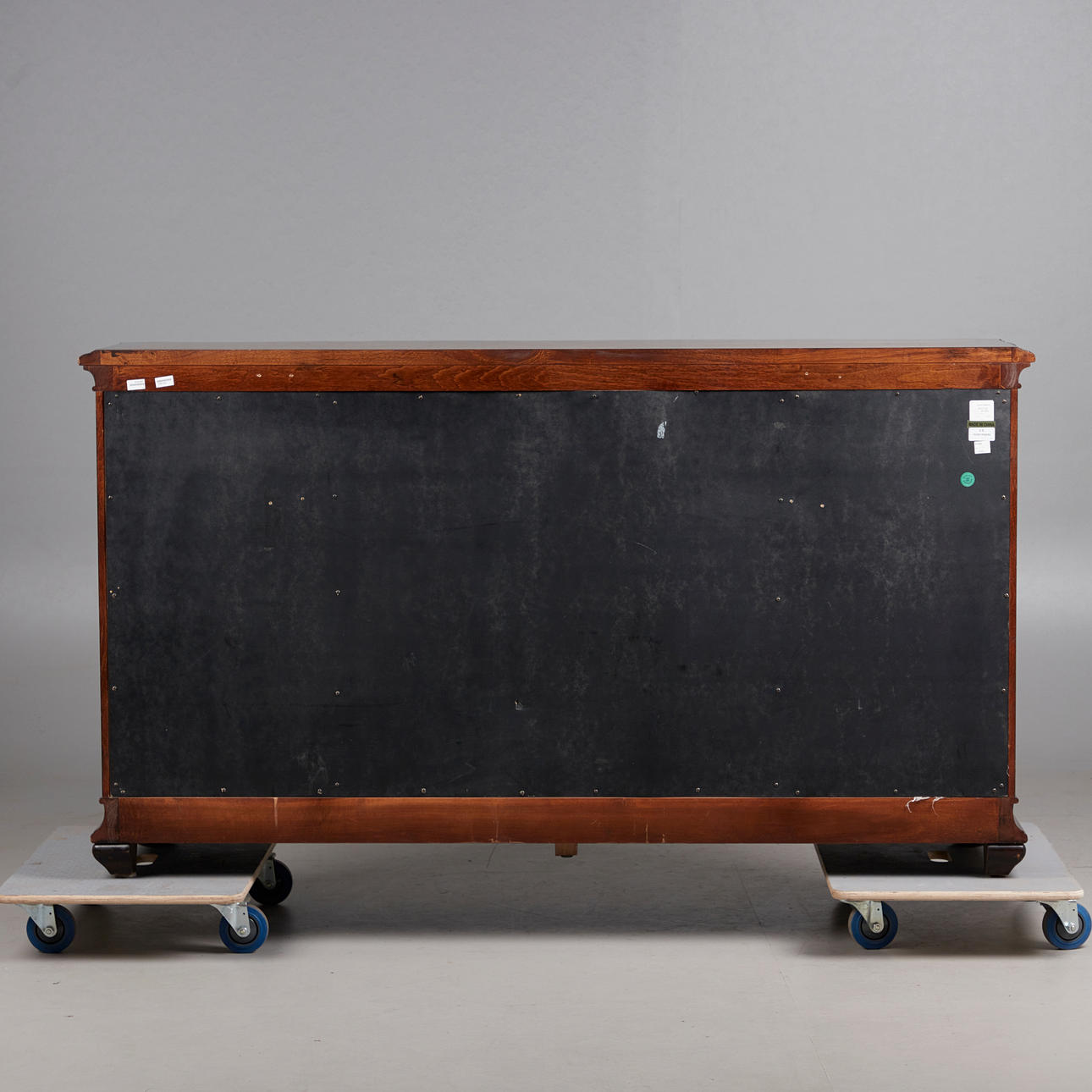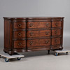byrå/skåp, metall, trä, porslin. Lackerat trä byrå med en böjd front och nio lådor, dekorerad med guldfärgade metallbeslag och inlägg, på baksidan med ursprungsbeteckning, H.107cm, L.190cm, W.53cm.