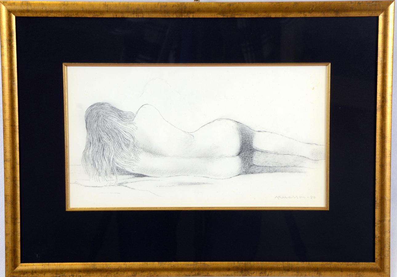 Liggande kvinna, sign och dat -80, 19x32 cm.
