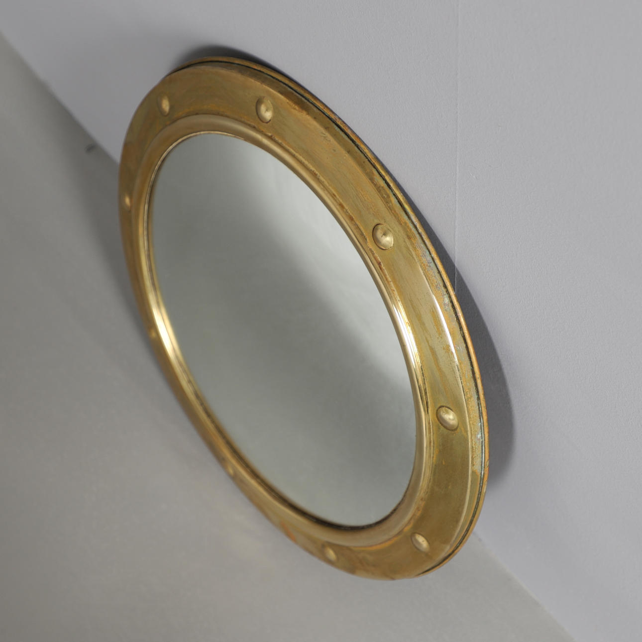 SPEGEL, mässing, tillverkad av Union of England. Konkav/fisk öga Spegel yta. Total diameter 38cm.