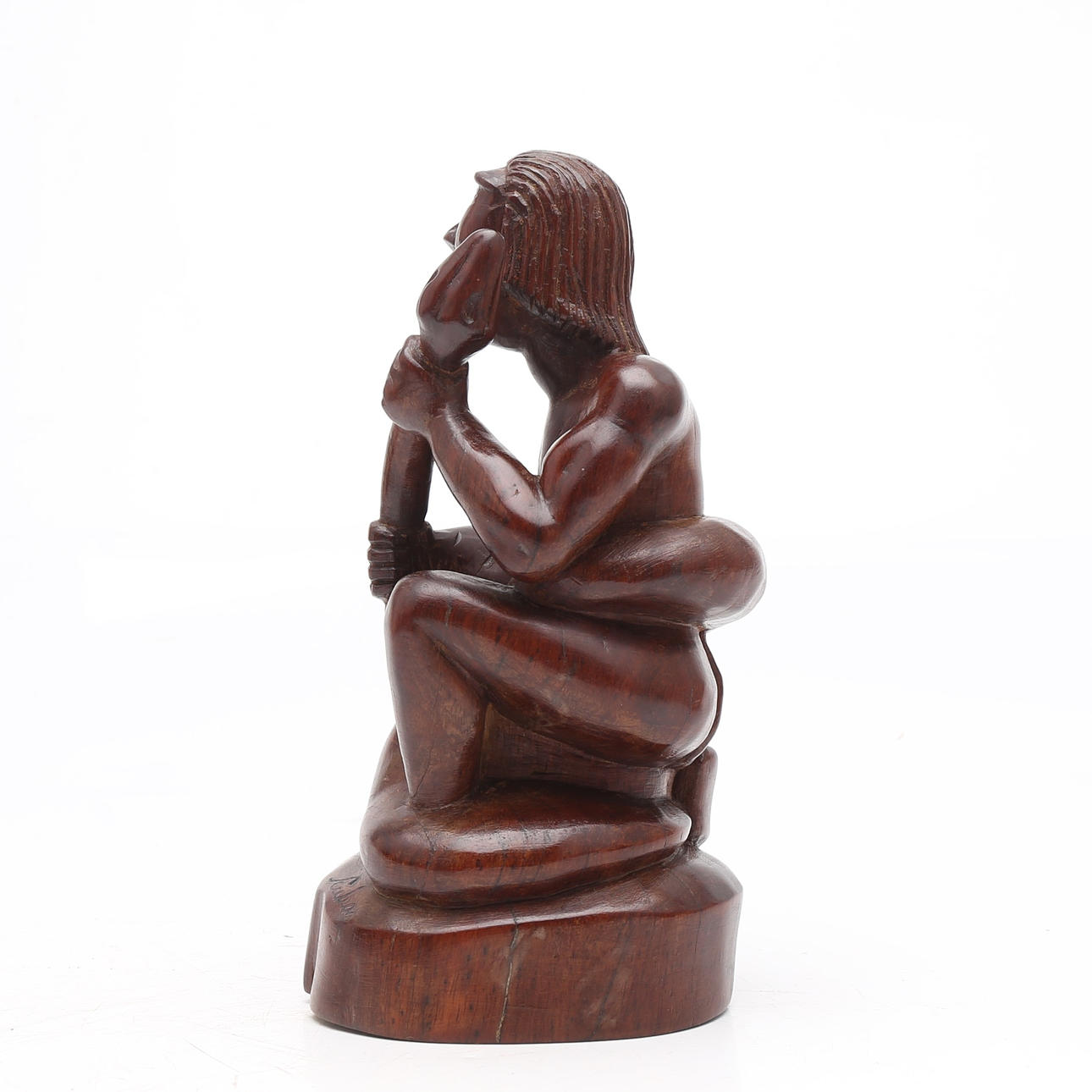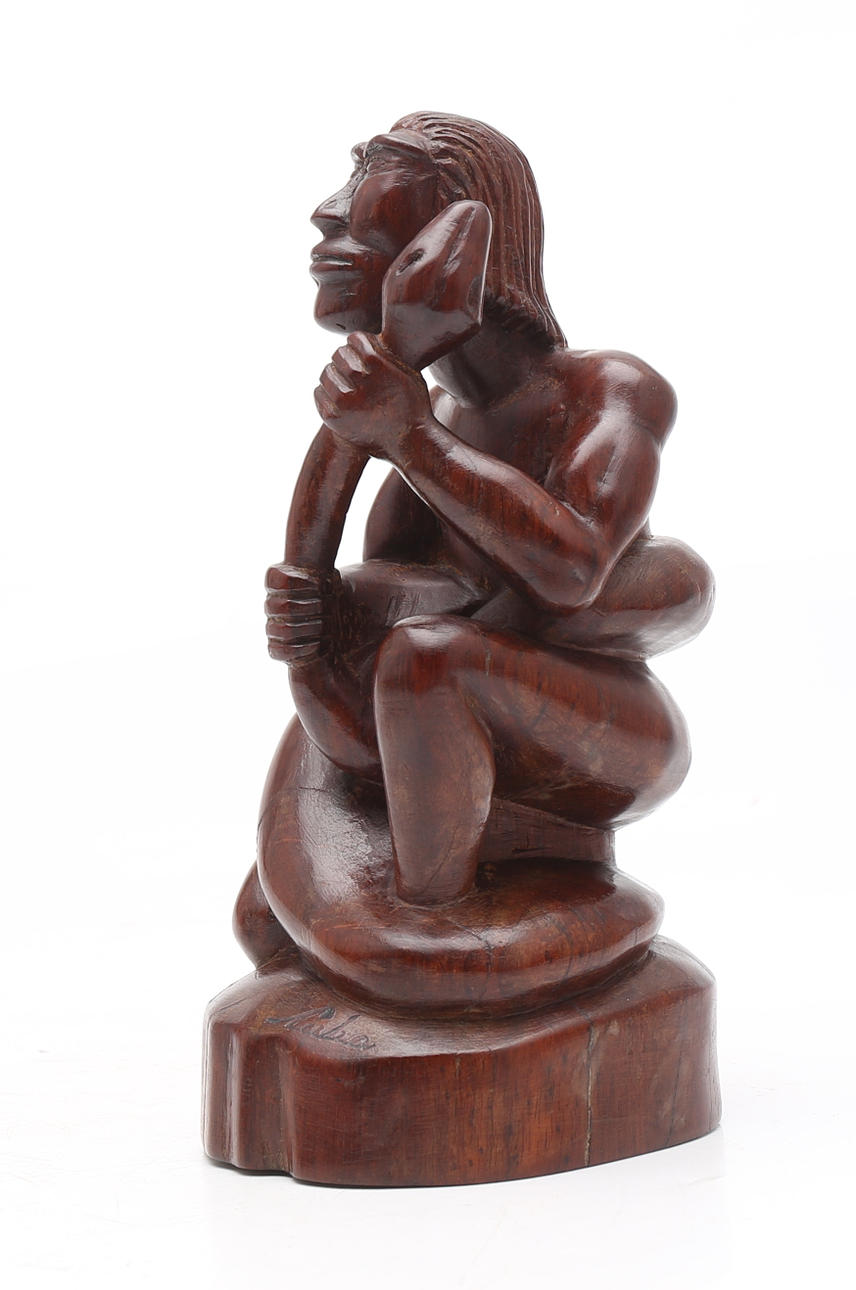 Skulptur i snidad mahogny. Förmodligen signerad ”Suba”.