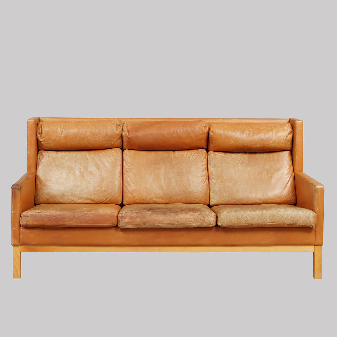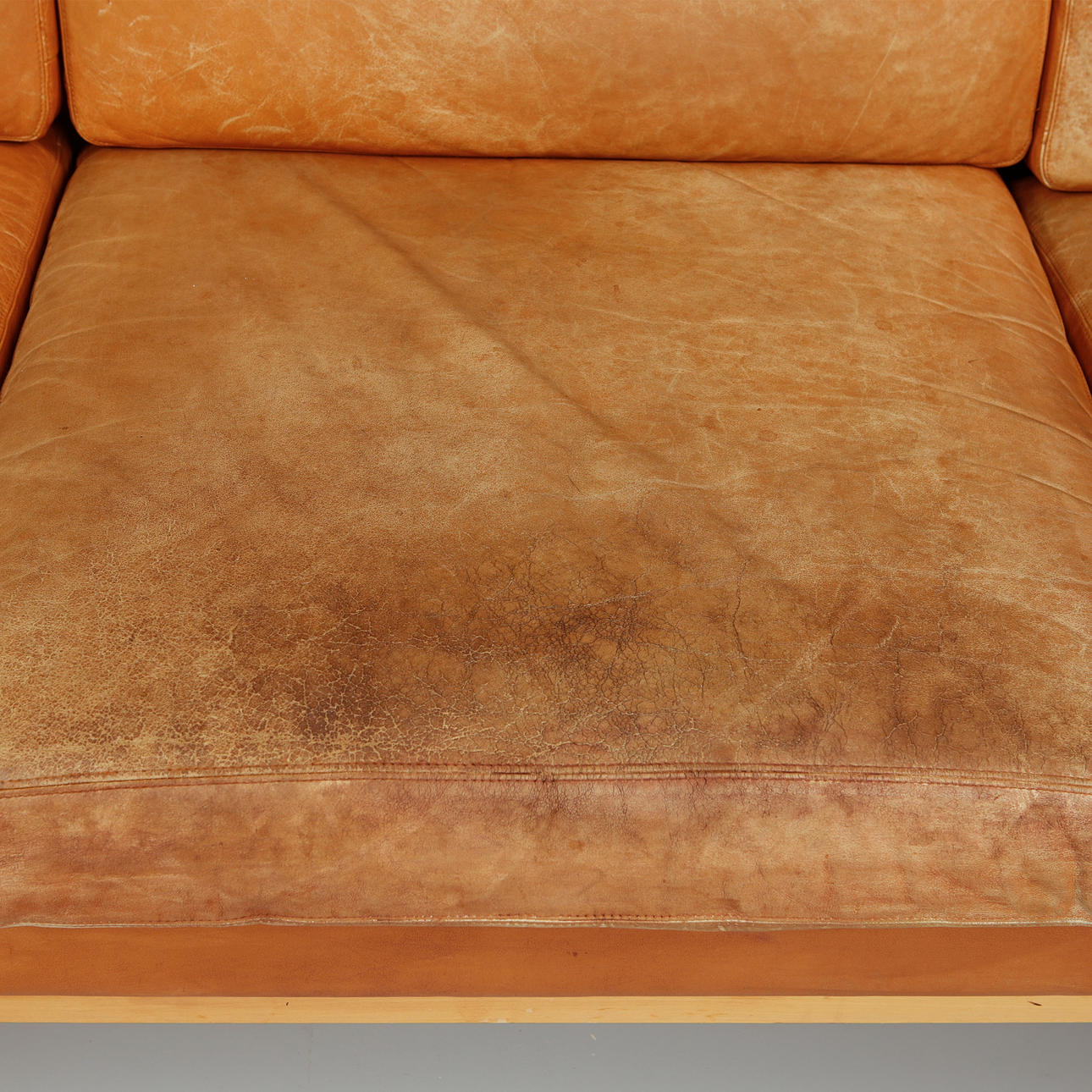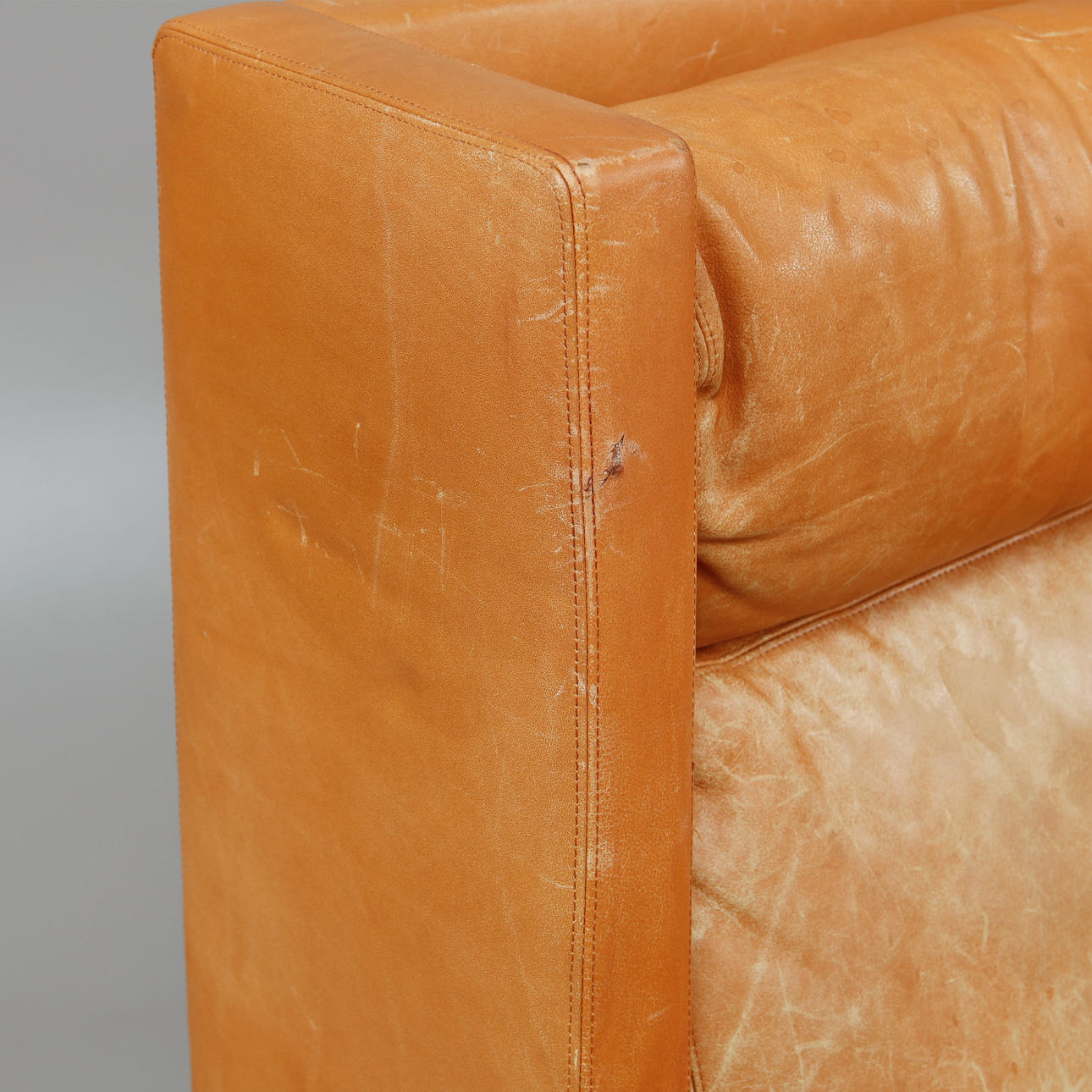 ljusbrun skinnklädsel, längd 210 cm, djup ca 95 cm.