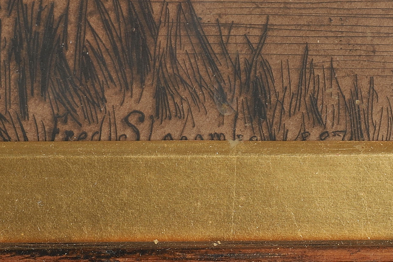Under glas, ej examinerad av glaserad ram. knackar till ram.
