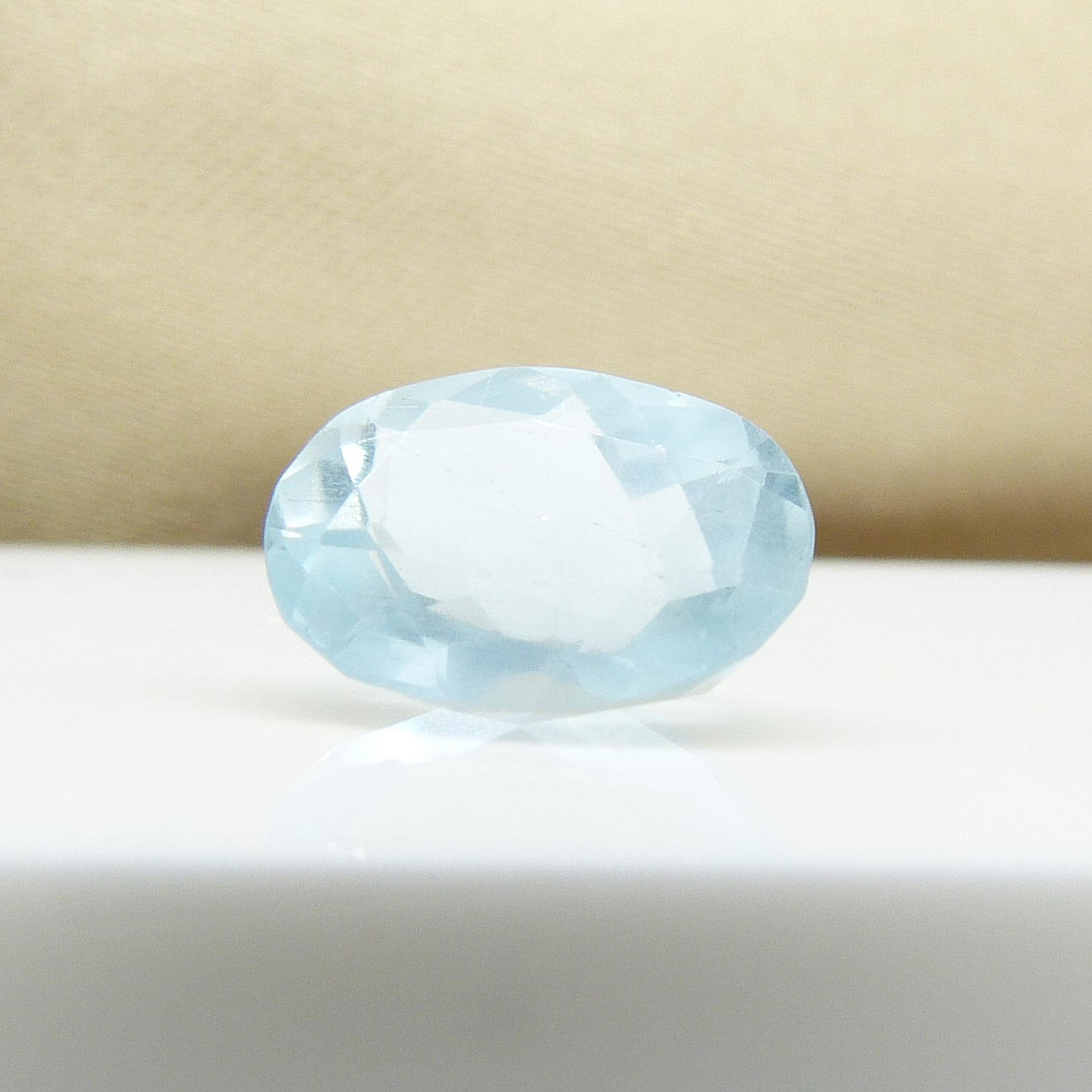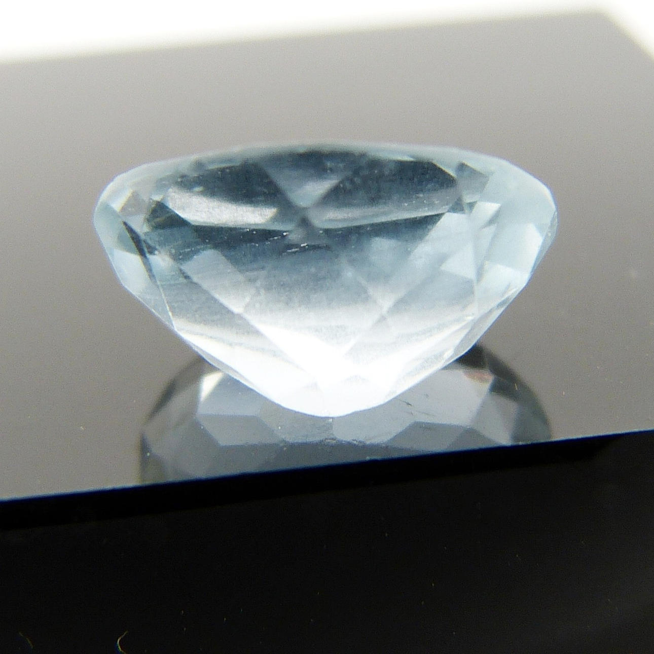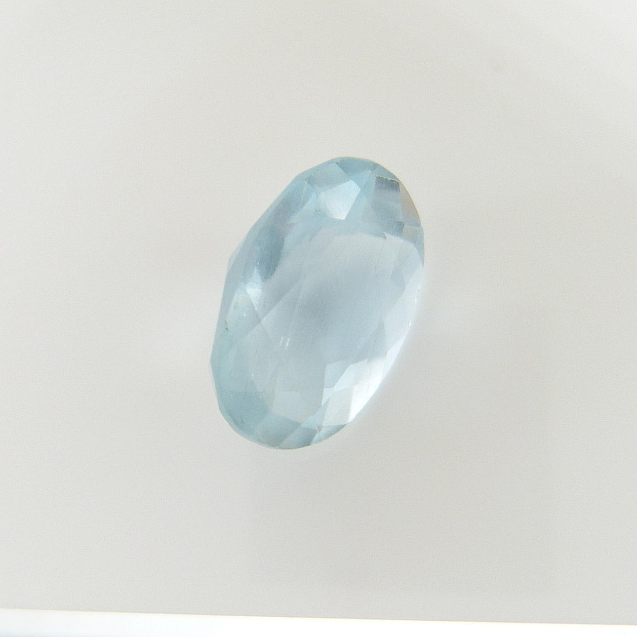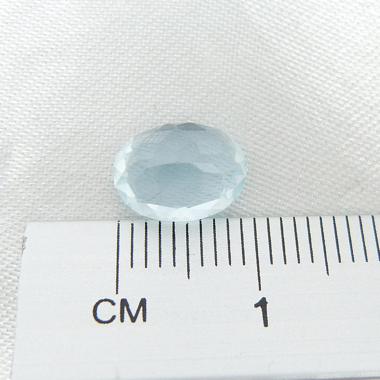 En naturlig oval akvamarin ädelsten som väger 2,09 karat.