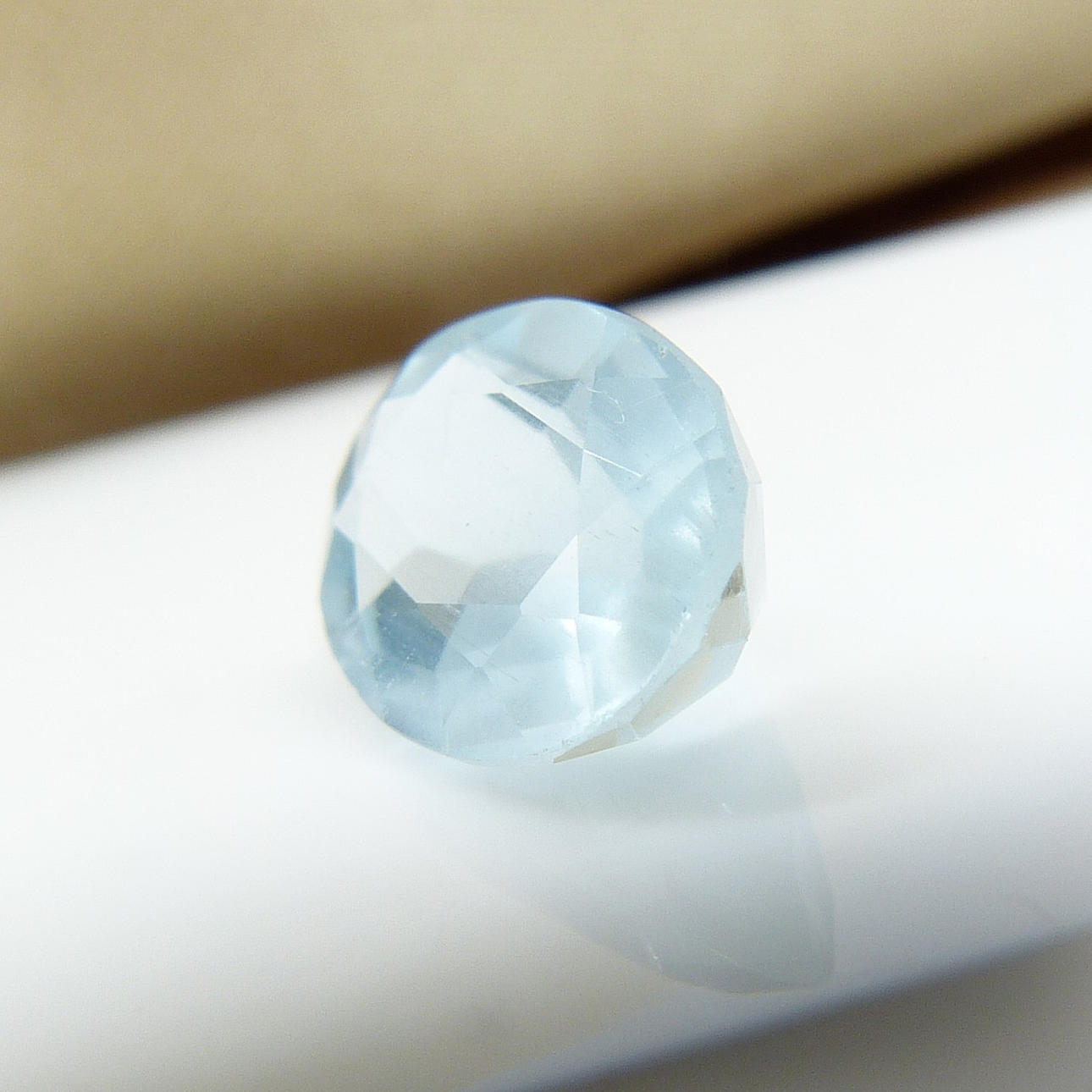 Denna akvamarin är naturlig, med en ljusblå nyans, något ogenomskinlig reflektion och naturliga brister.