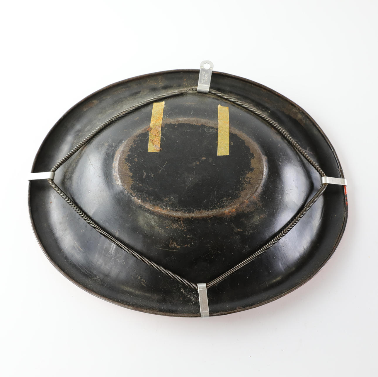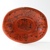 Skålformad, bemålad, dekorerad. Vägghängare medföljer.