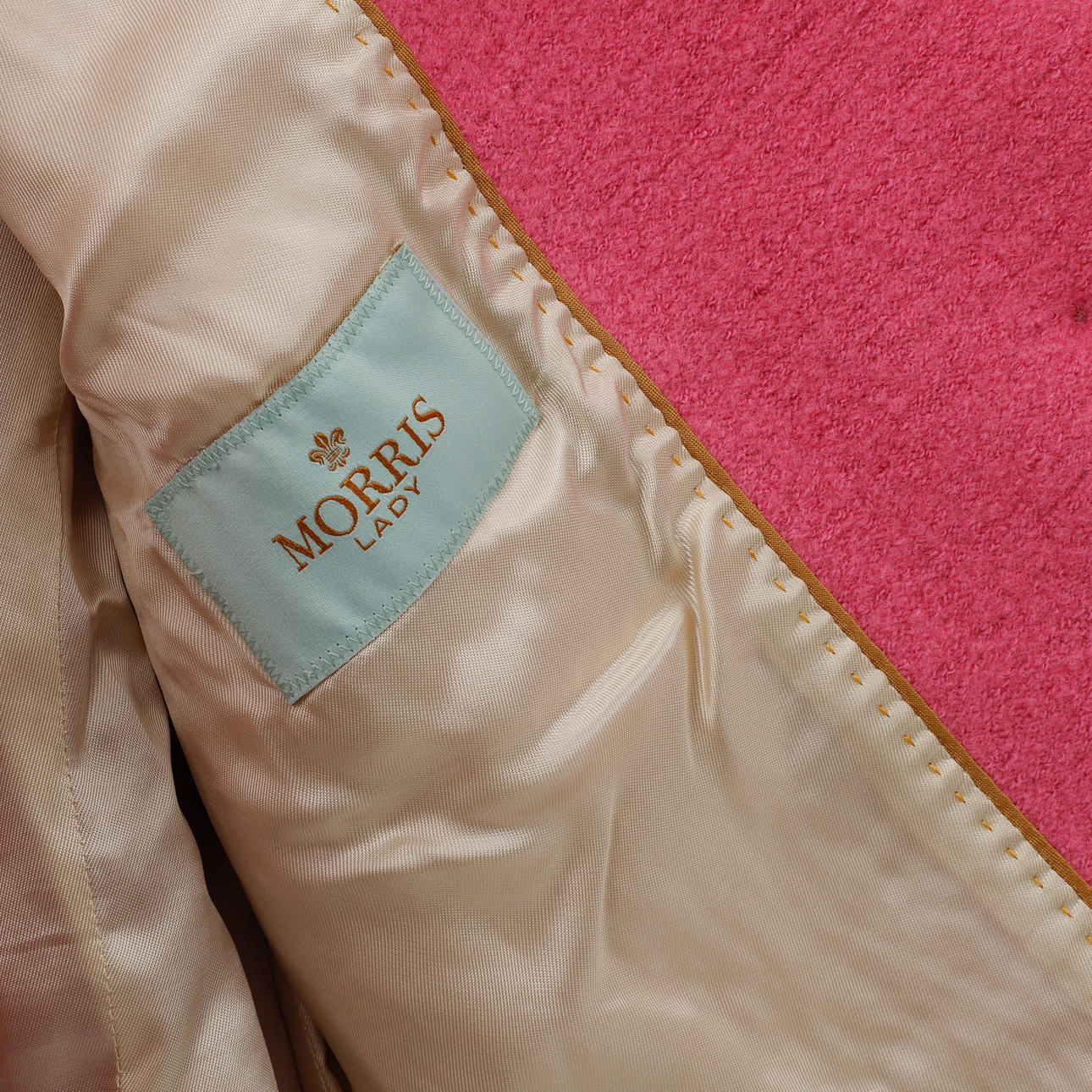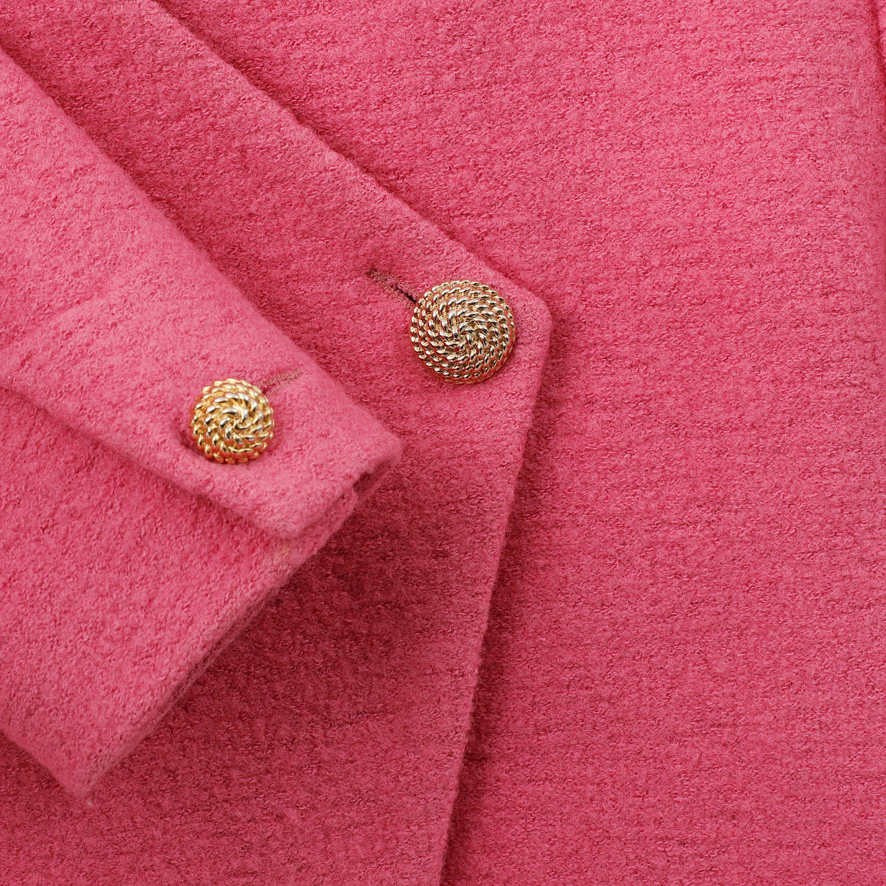 Kavaj i rosa ull- och bomullsblandning. Knappar i gulmetall. Rygglängd 53 cm.