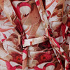 Klänning i polyester med mönster av växtlighet. Knytskärp i midjan. Längd 142 cm.