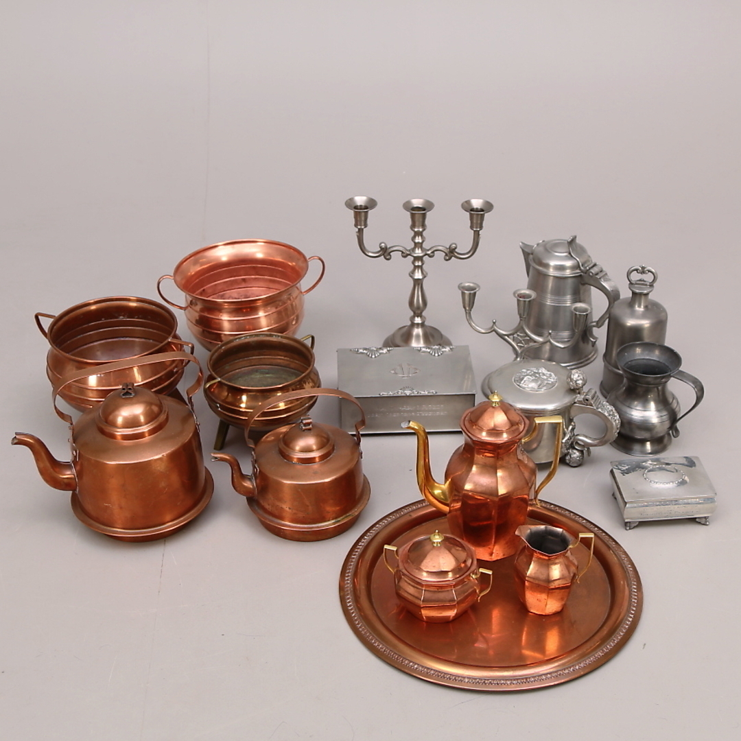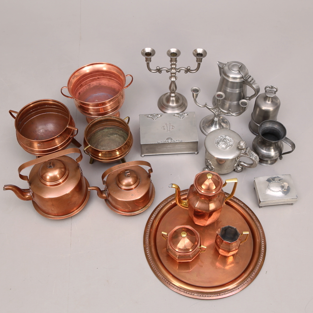 240720. KOPPAR- och TENNFÖREMÅL 17 st, diverse.