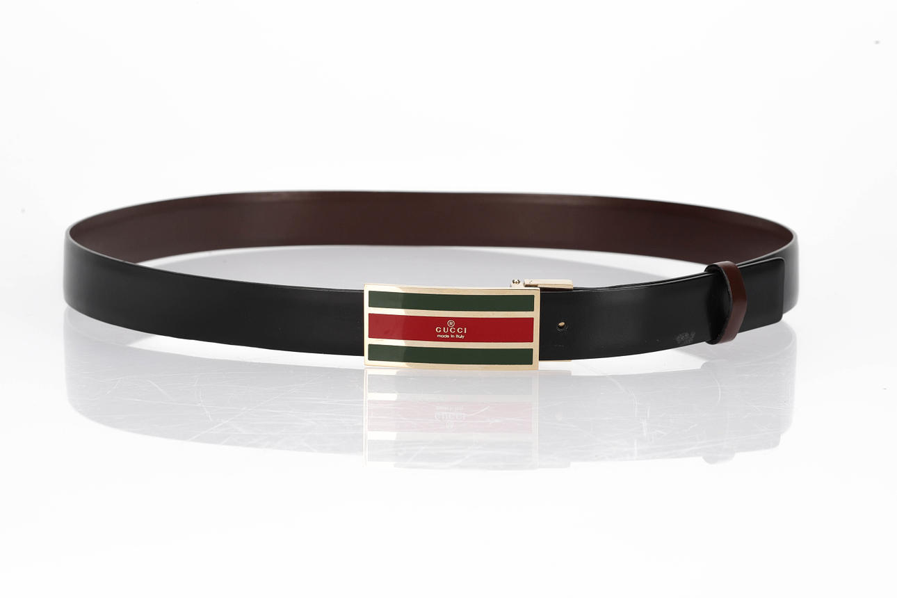Flerfärgad/guldfärgad spänne, vändbar rem brun/svart. Extra del medföljer.