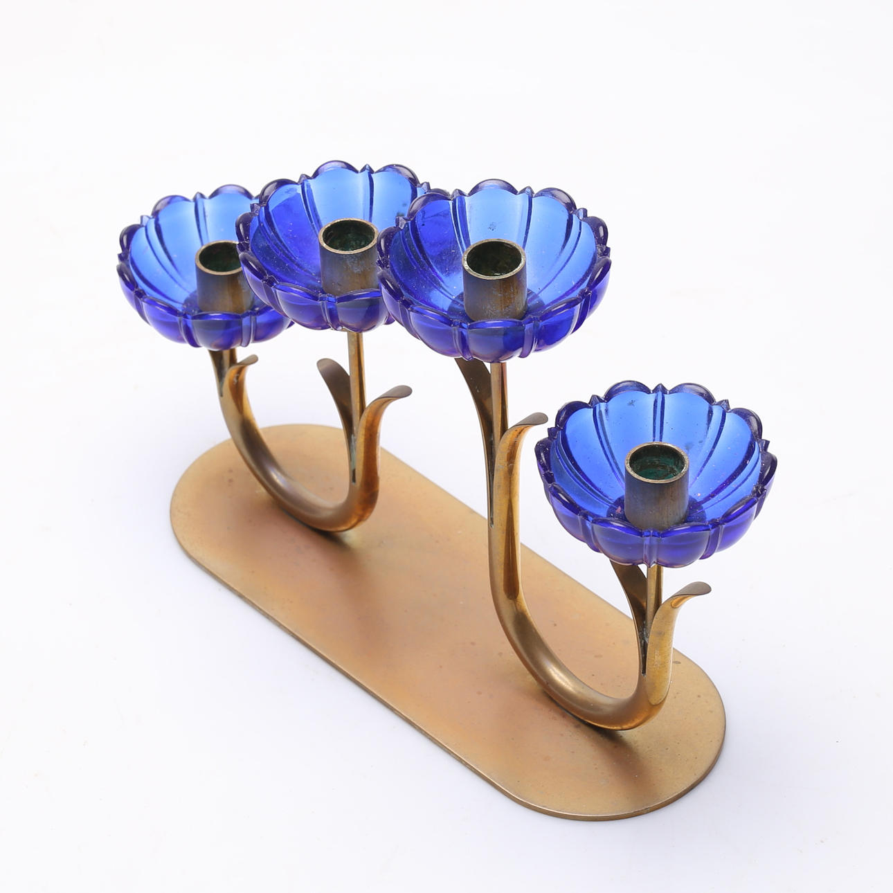Bruksslitage. Ljusmanschetter med smärre nagg. Anlupen/missfärgad bottenplatta.