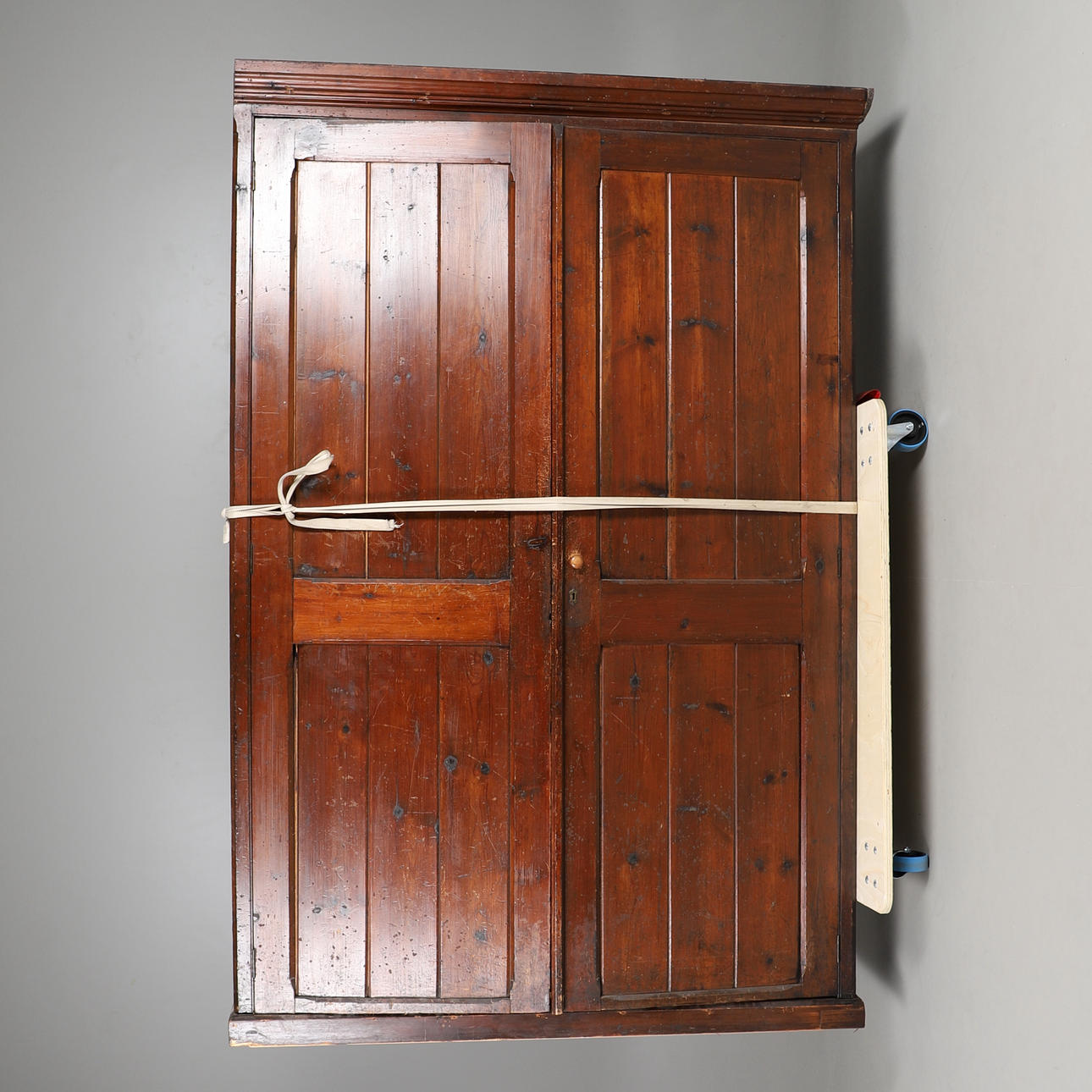 Skolskåp med två dörrar ek med fem hyllor, höjd 226, bredd152cm, djup 34cm.