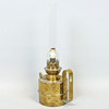 Fotogenlampa för väggupphängning. Brännaren är märkt "KL" samt ett ankare. Höjd inkl brännarrör 33,5 cm. Diam botten ca 10 cm.