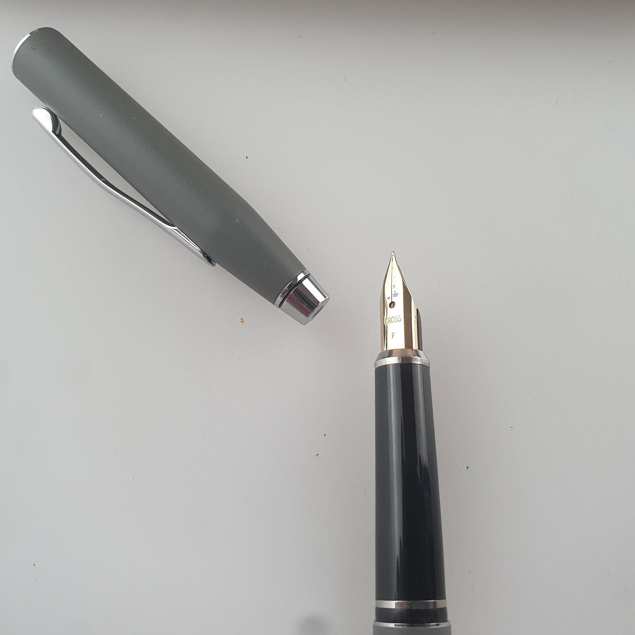 Kolvfyllmedel ”Cross” - rostfritt stål nib, guldpläterad, längd ca. 13,5 cm.