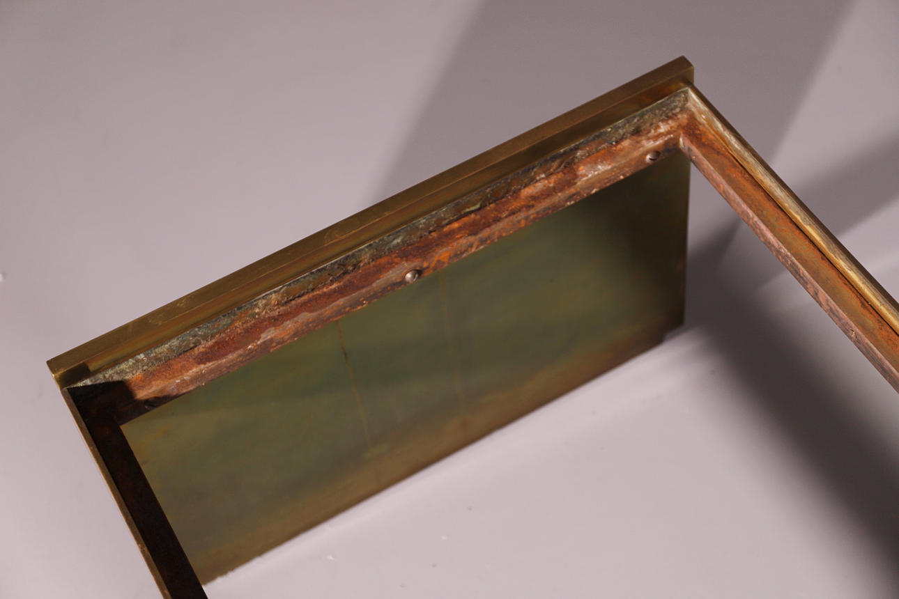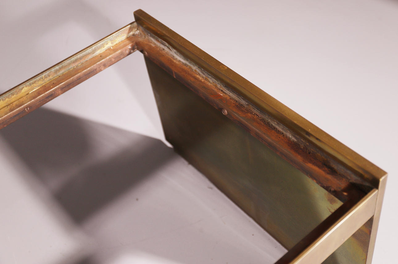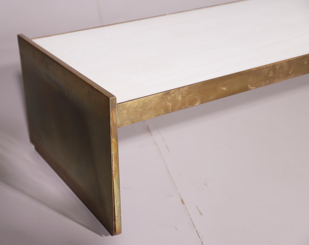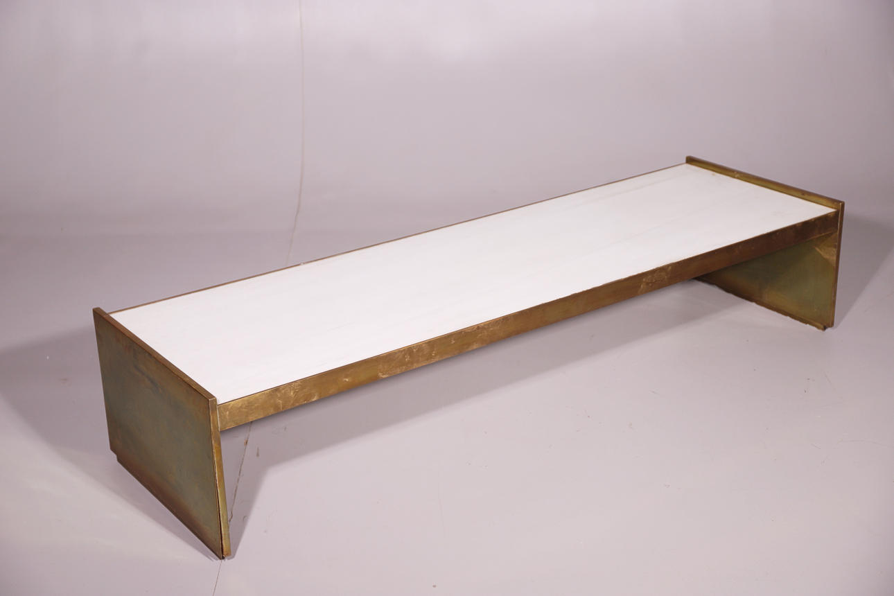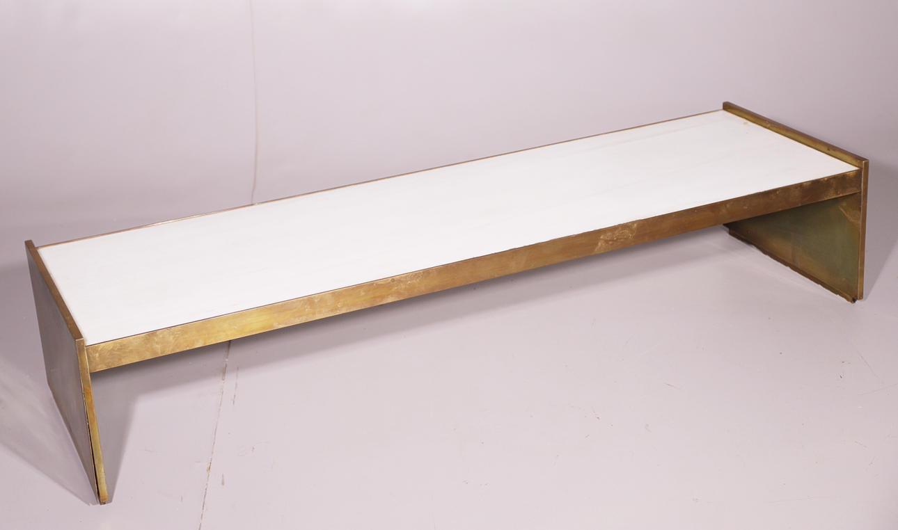 2414914. GULD METALL SIDOBORD MED MARMOR TOPP.