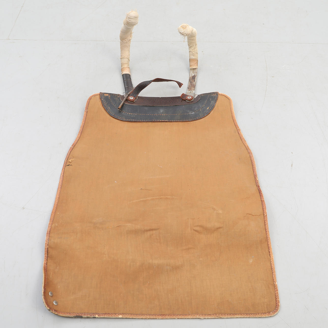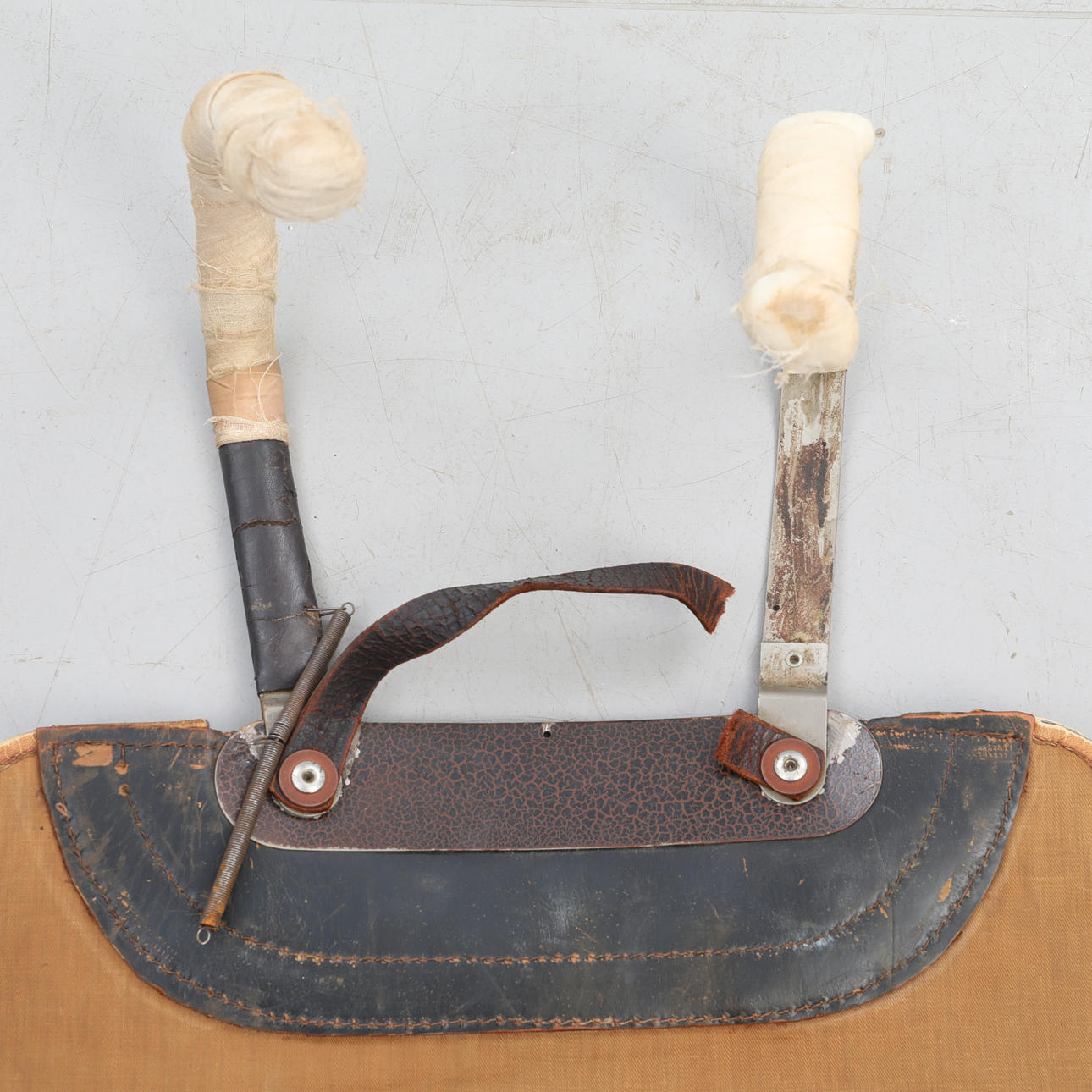 Begagnat bruksslitage, lite ytrost på metalldelarna. Lädret är uttorkat.
