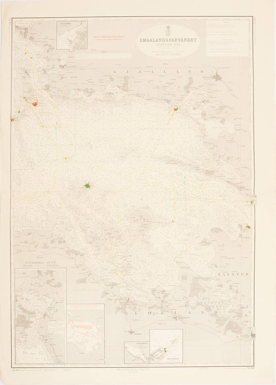 SJÖKORT DANMARK, 4 st, 1950-60-tal. Titlar bl.a.: Svendborg sund + Guldborg sund, Lim fjord