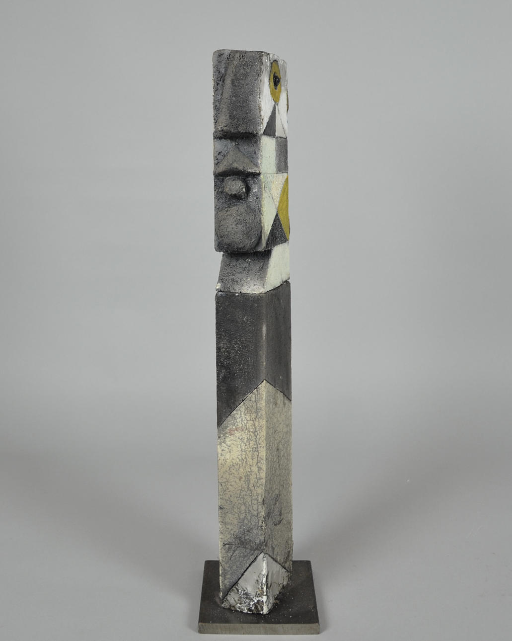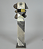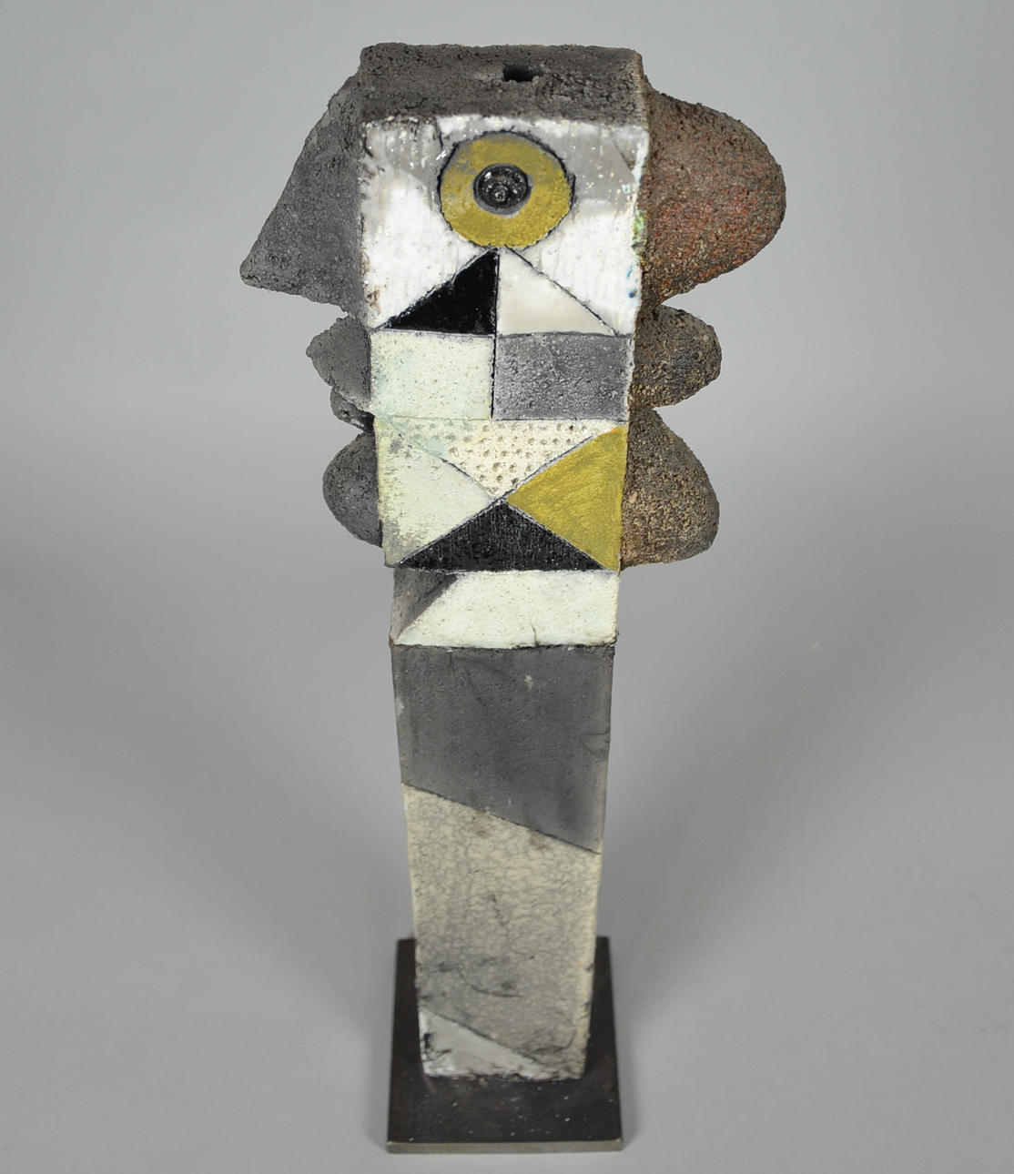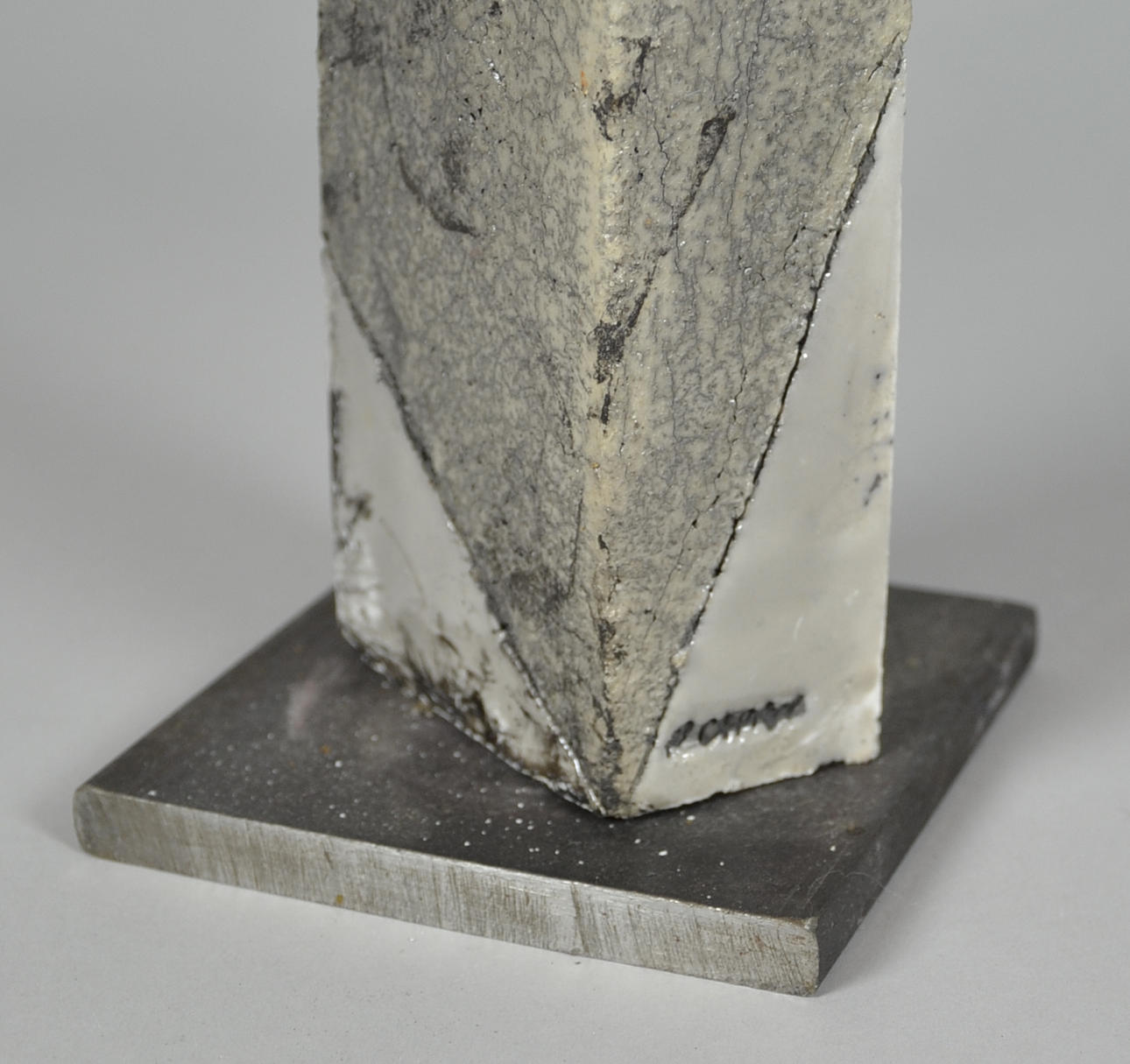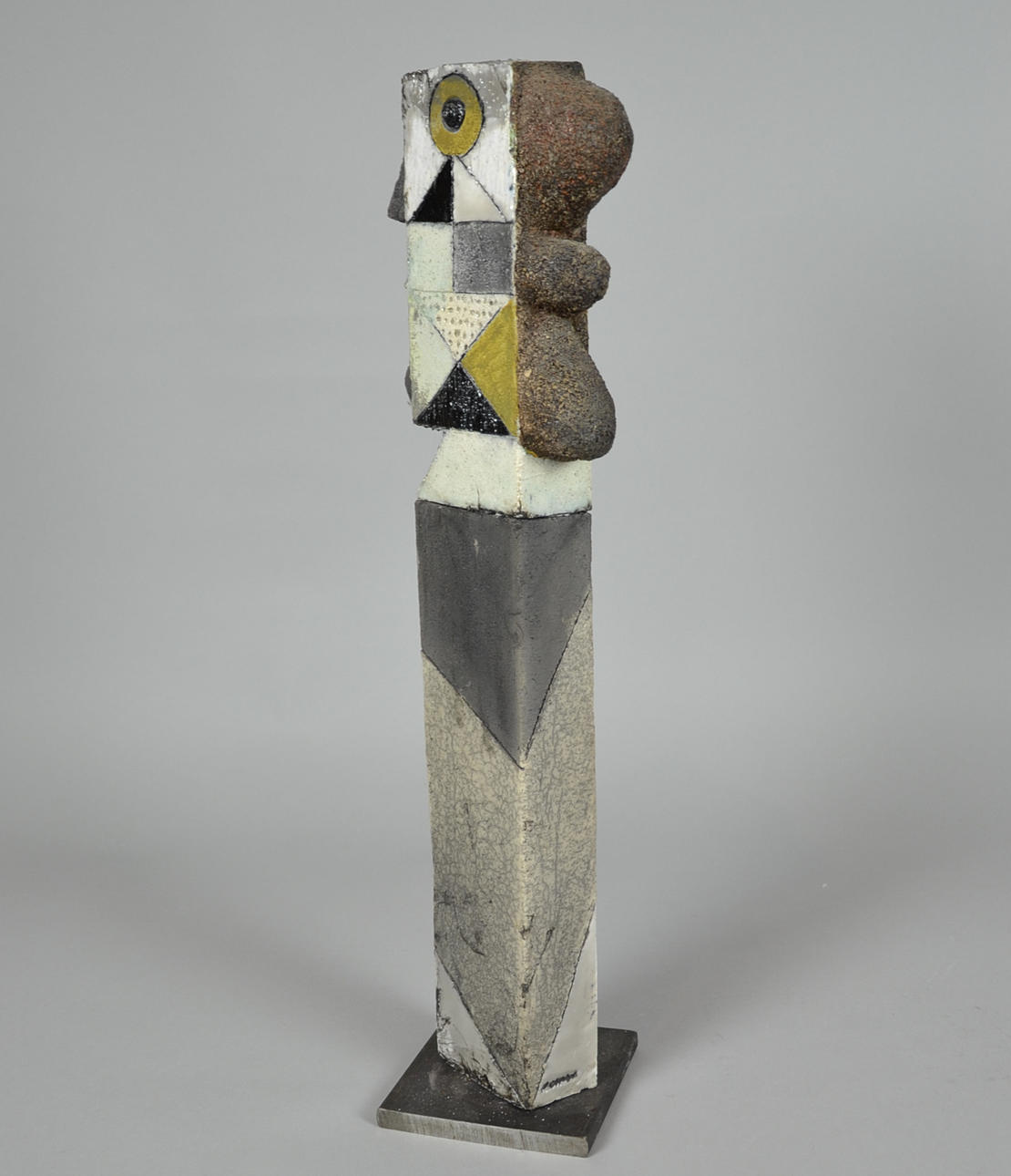 Keramik på stålstöd målad och glaserad. Signerad. H. 47cm.