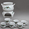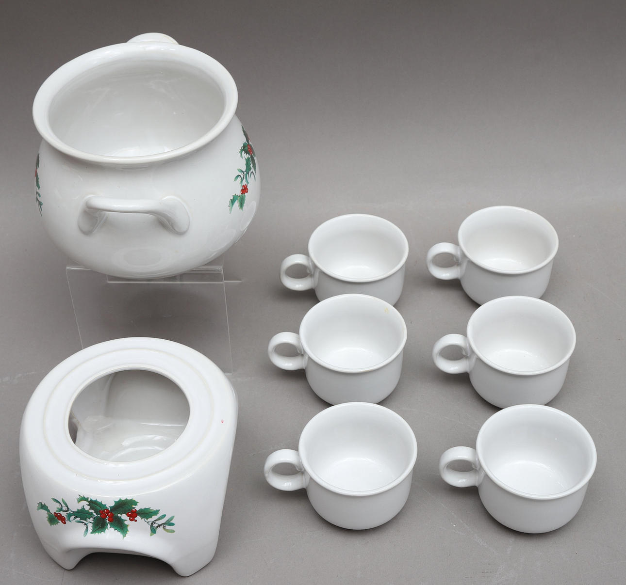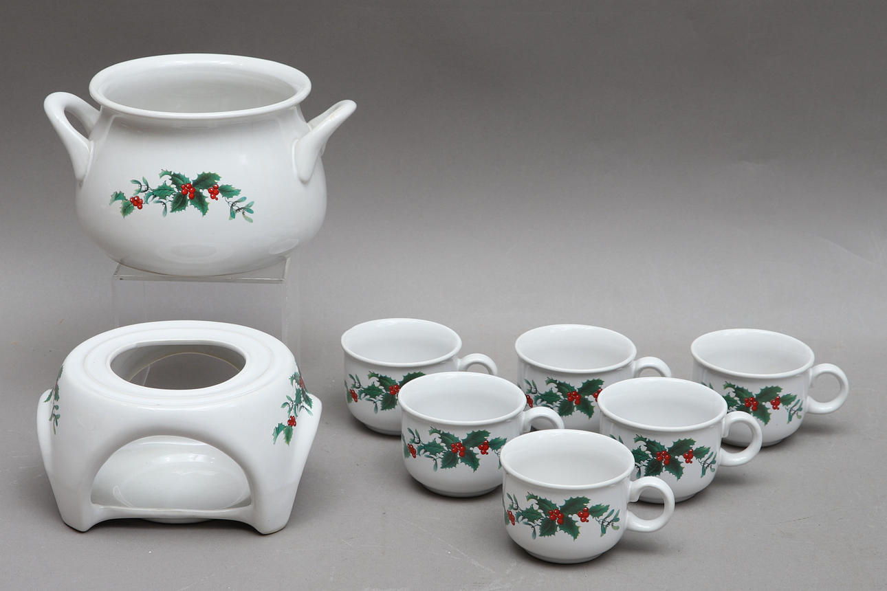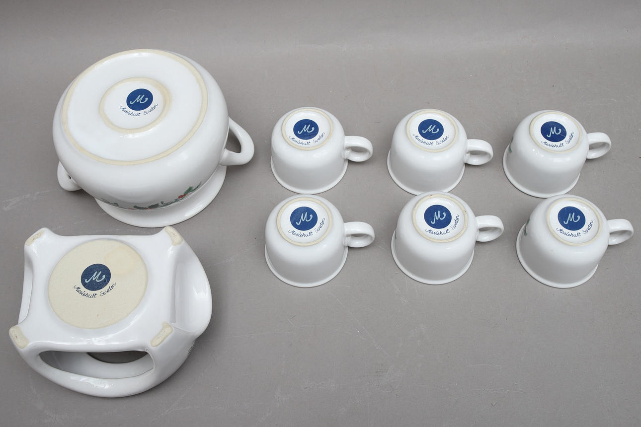 Glöggmuggar 6 st. höjd ca: 5,5 cm, diameter ca: 7 cm. Glögg värmare, höjd tillsammans ca: 18,5 cm, diameter ca: 13 cm.