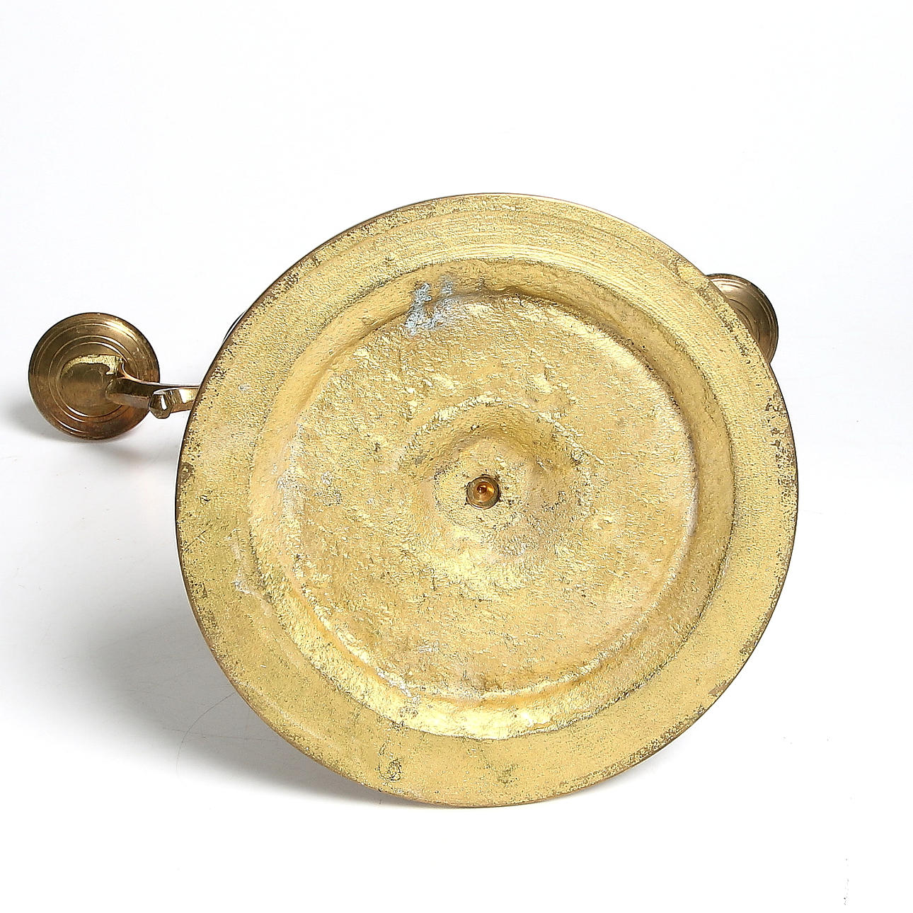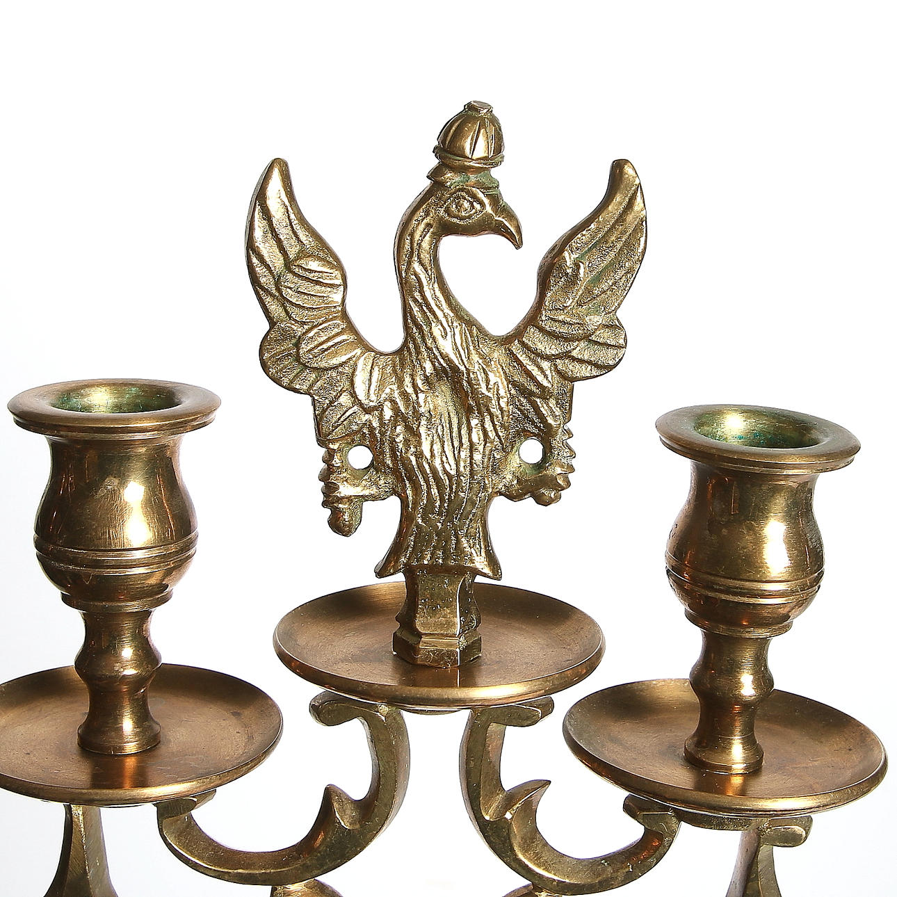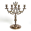 Mässing. 4 ljuspunkter. Krönt av örn. Höjd 42,5 cm. Bredd 34 cm.