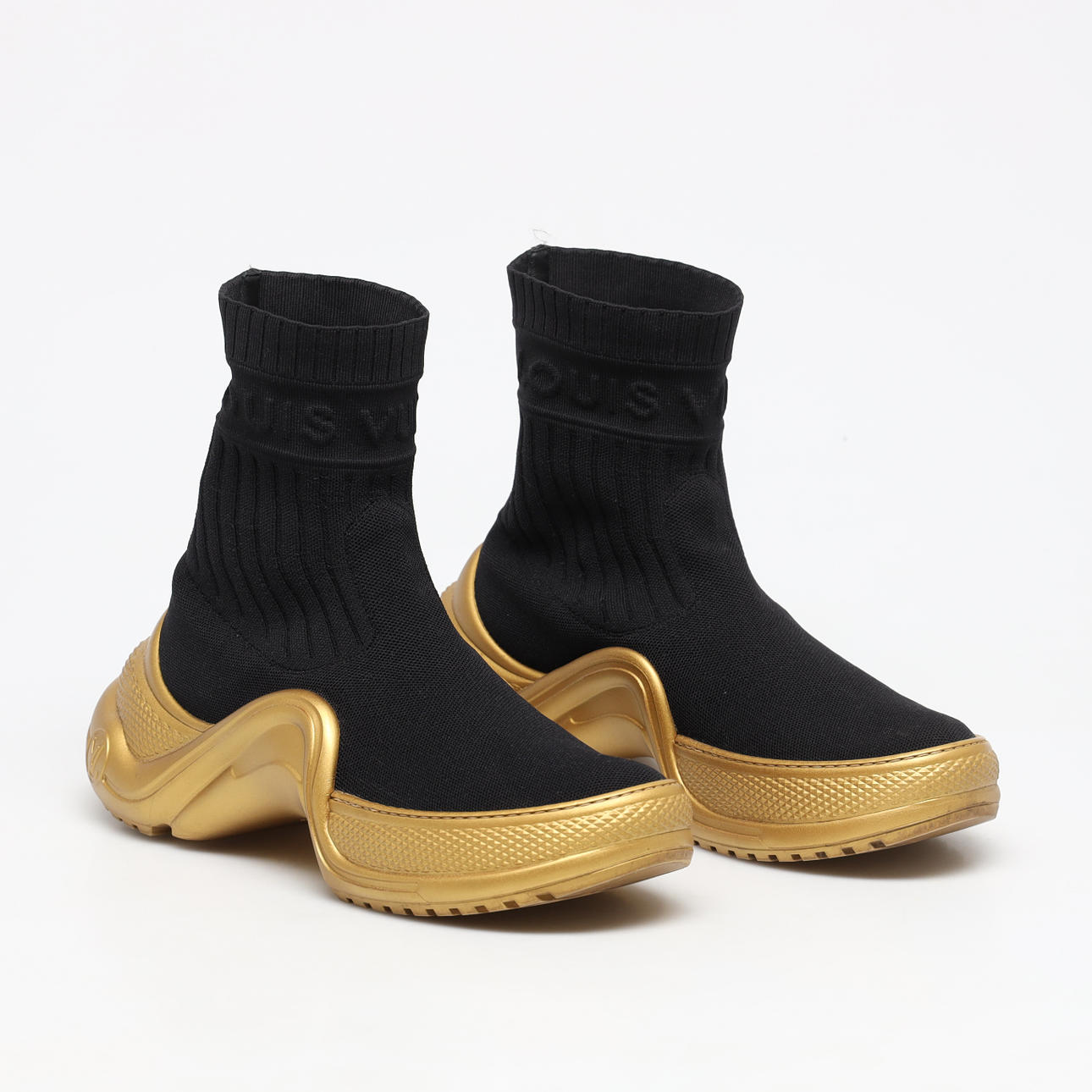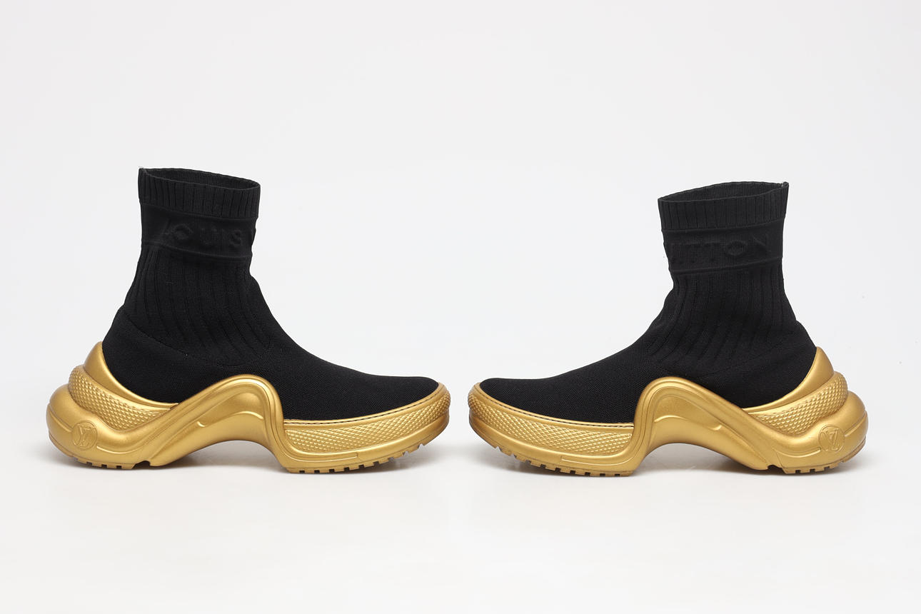 Strumpsko med guldfärgad gummisula, Modell Archlight. Storl 42. Med originalförpackning, skopåsar och box.
